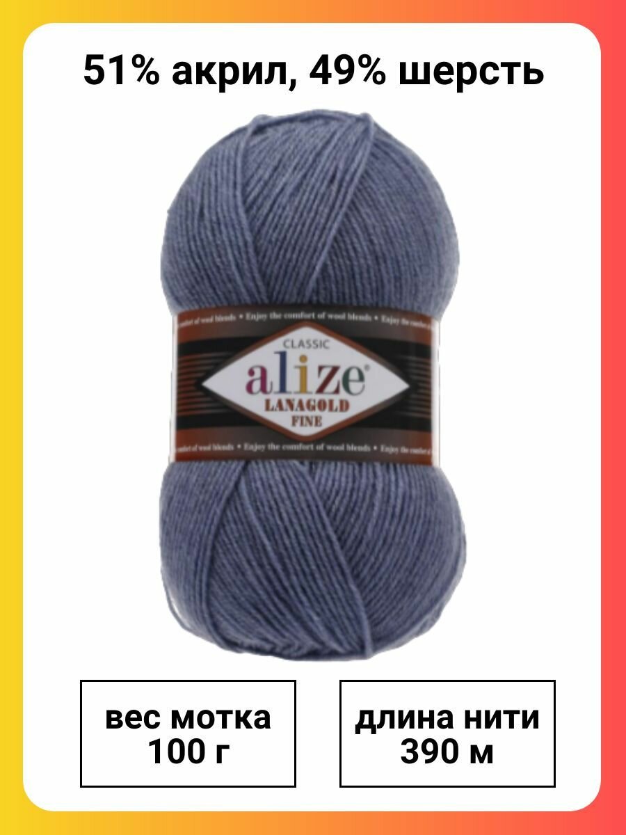Отзывы на Пряжа для вязания ALIZE 'Lanagold fine', 100г, 390м (49% шерсть, 51% акрил) (203 джинс меланж), 5 мотков