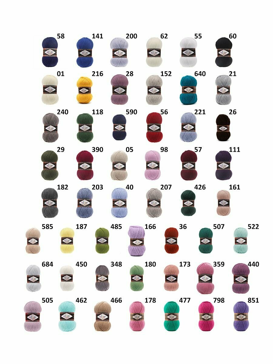 | Цвет товара | 01, 05, 111, 118, 141, 151, 152, 154, 155, 161, 166, 173, 178, 180, 182, 187, 193, 200, 203, 207, 21, 214, 216, 221, 240, 26, 260, 28, 287, 29, 348, 359, 36, 36 терракот, 381, 390, 40, 426, 440, 450, 462, 466, 477, 485, 495, 499, 505, 507, 521, 522, 55, 56, 57, 58, 583, 585, 590, 60, 62, 640, 684, 798, 851, 98 |