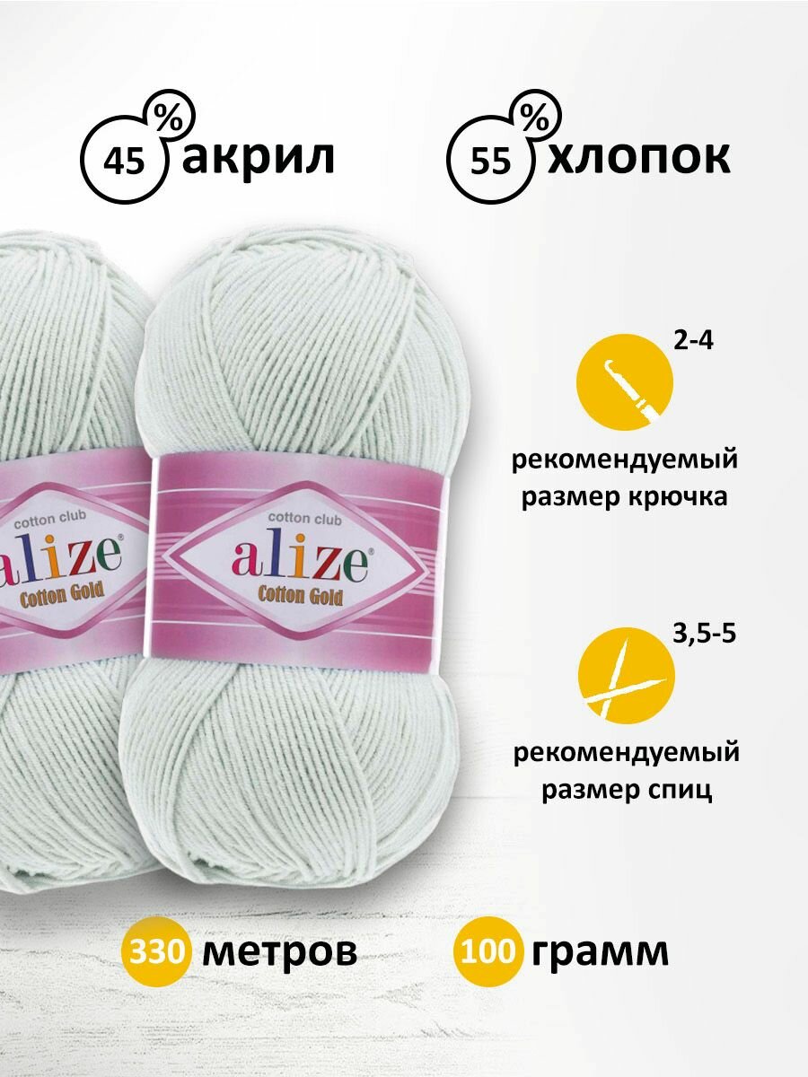 Пряжа "Alize Cotton Gold", цвет: 522 - Мята, 3 шт., Хлопок 55%, Акрил 45%, 100 гр. 330 м. 1 075 ₽