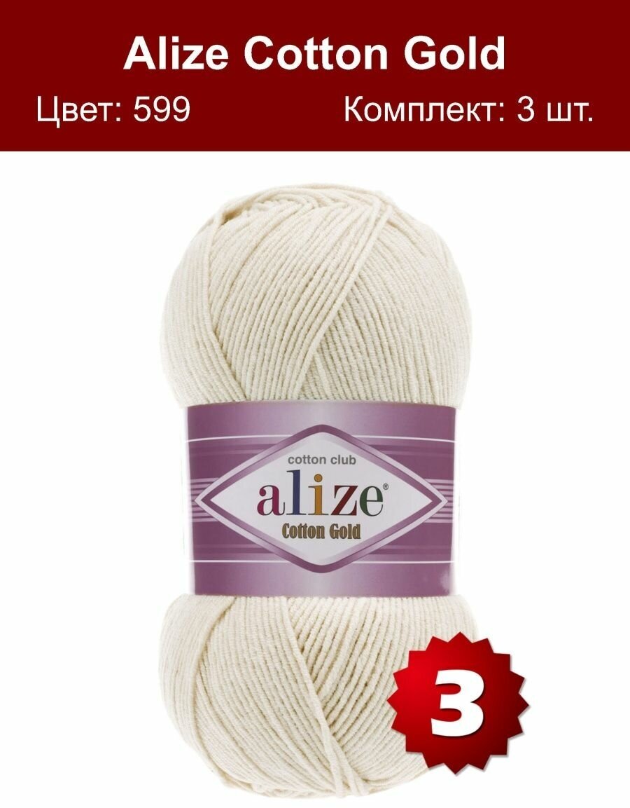 10 цен на Пряжа Alize Cotton Gold слоновая кость (599), 55%хлопок/45%акрил, 330м, 100г, 3шт