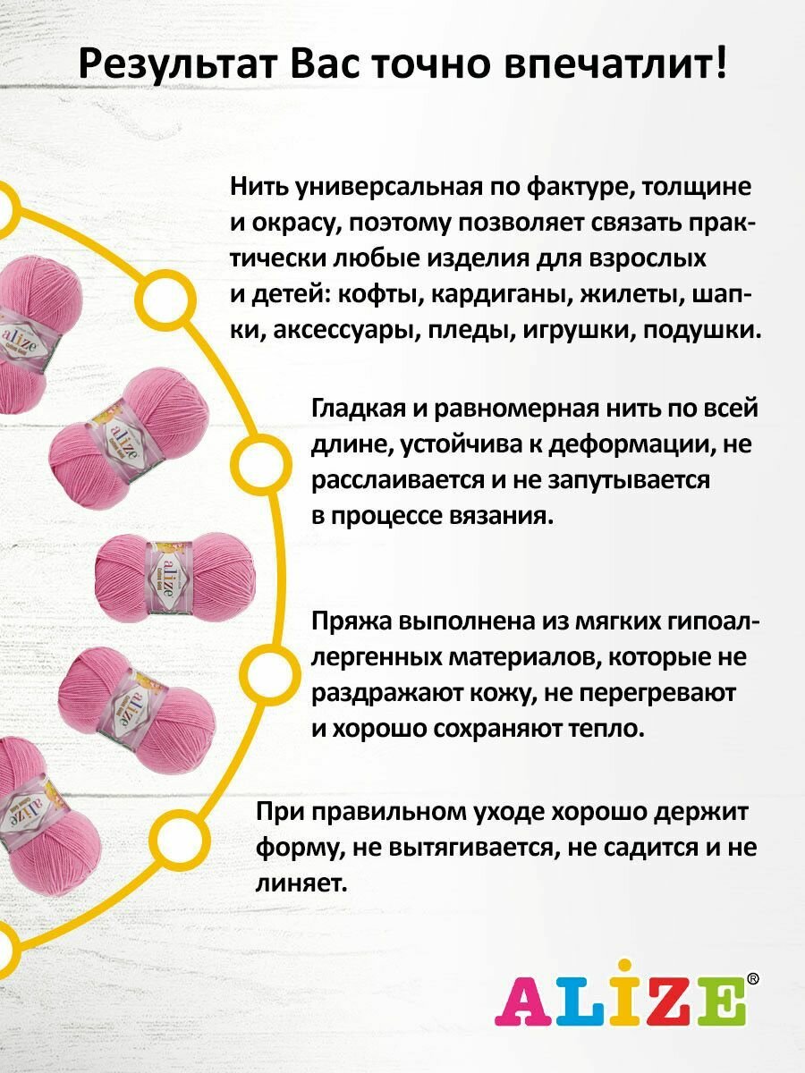 Пряжа для вязания Alize Diva, цвет 168, моток 100г, 350м, 5 мотков