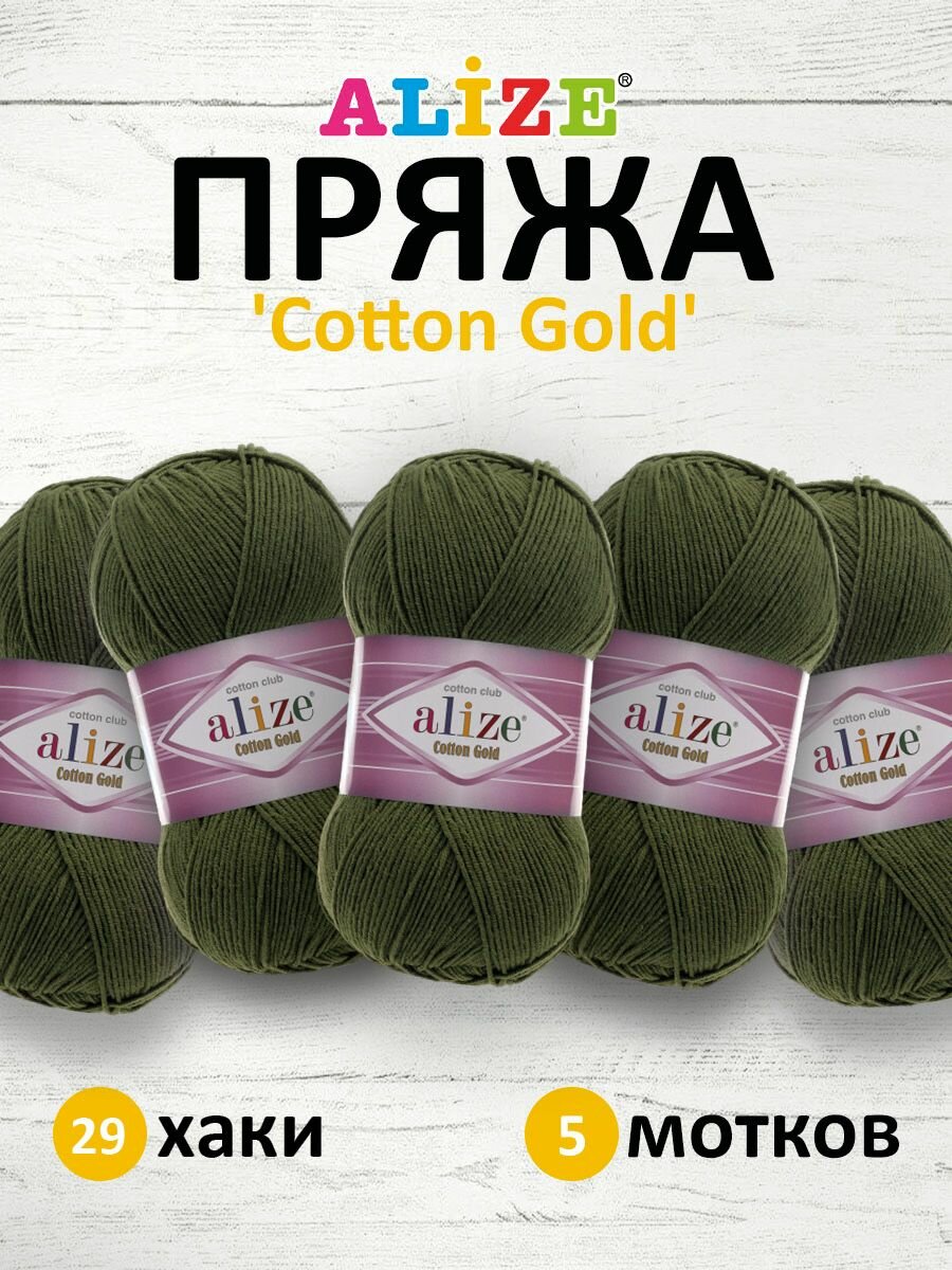 10 цен на Пряжа для вязания ALIZE 'Cotton gold', 100г, 330м (55% хлопок, 45% акрил), ТУ (29 хаки), 5 мотков