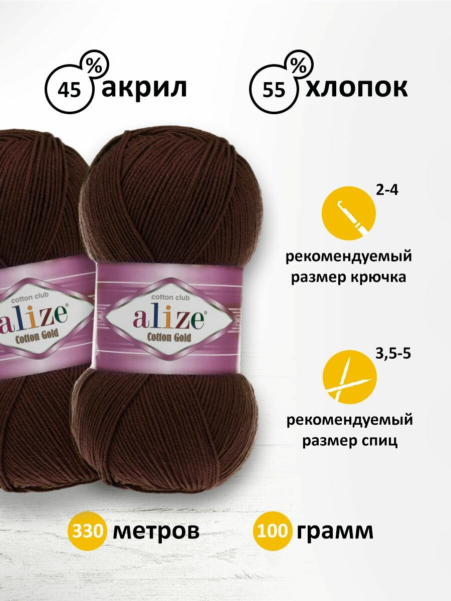 Пряжа для вязания ALIZE 'Cotton gold', 100г, 330м (55% хлопок, 45% акрил), ТУ (26 коричневый), 5 мотков информация: