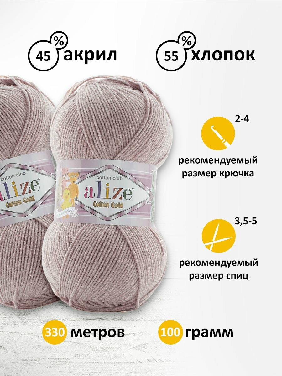 Отзывы на Пряжа для вязания ALIZE 'Cotton gold', 100г, 330м (55% хлопок, 45% акрил), ТУ (592 пыльная роза), 5 мотков