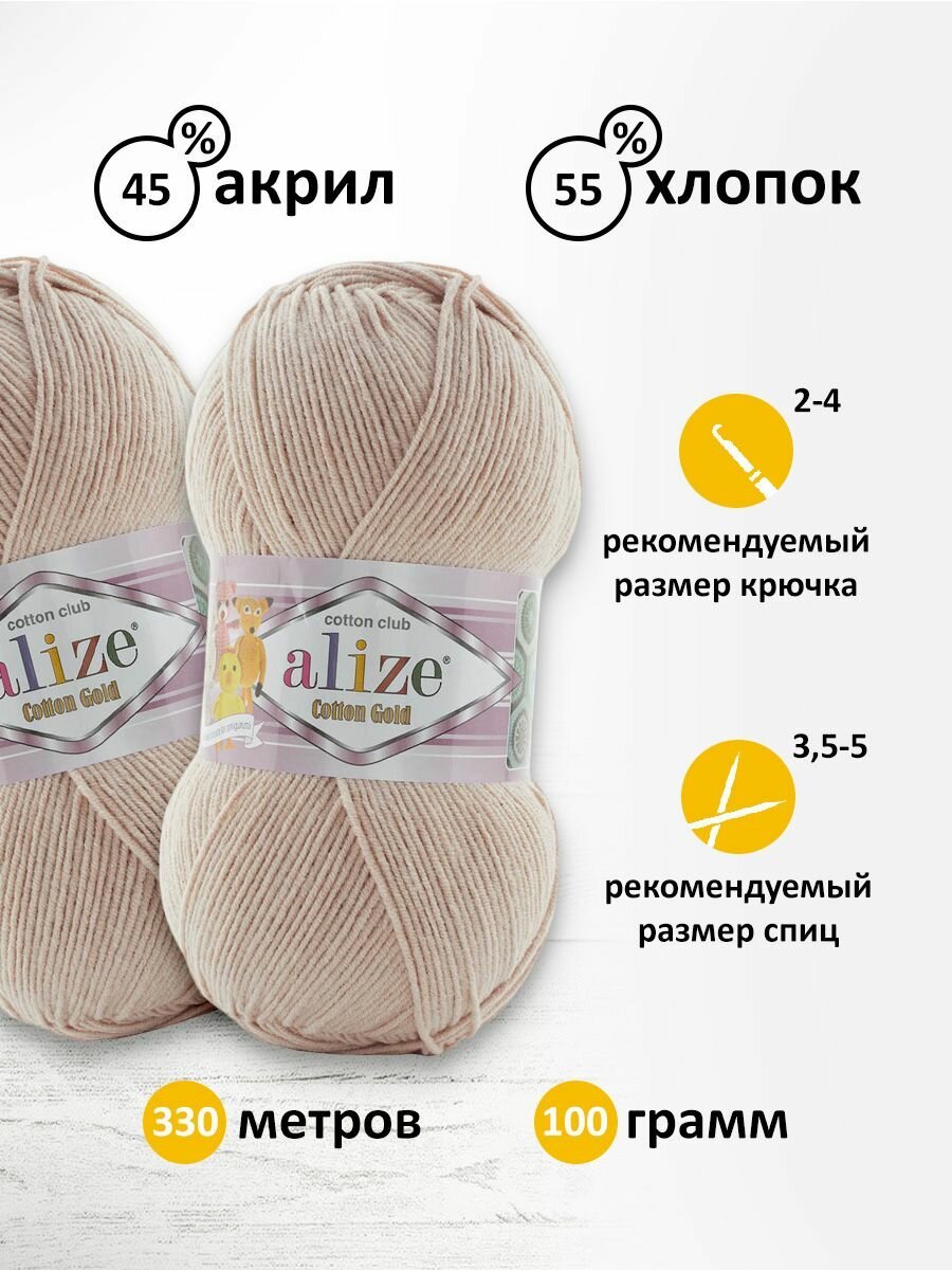 Пряжа для вязания ALIZE 'Cotton gold', 100г, 330м (55% хлопок, 45% акрил), ТУ (314 светло-бежевый), 5 мотков информация:
