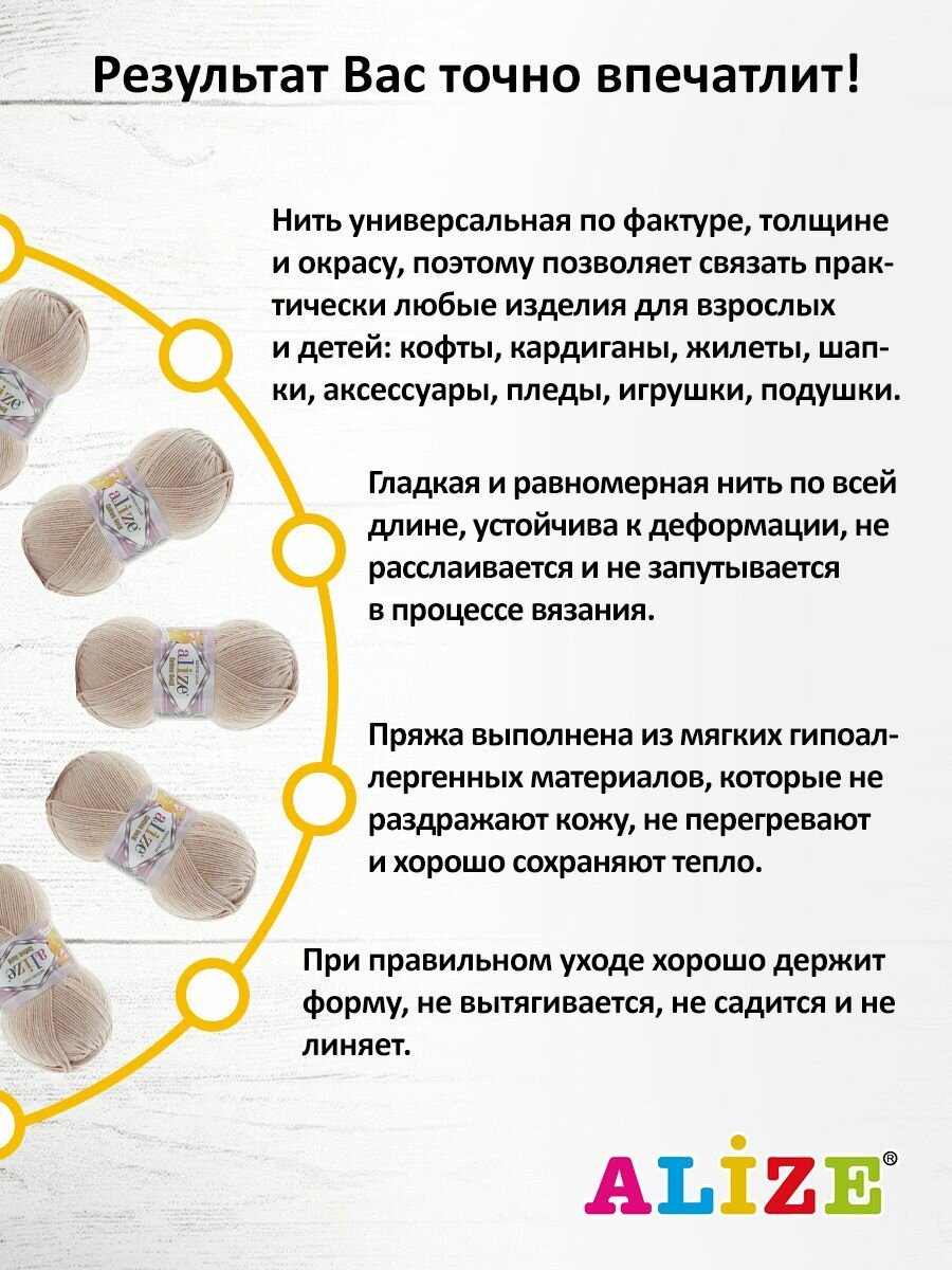 Отзывы на Пряжа для вязания ALIZE 'Cotton gold', 100г, 330м (55% хлопок, 45% акрил), ТУ (314 светло-бежевый), 5 мотков