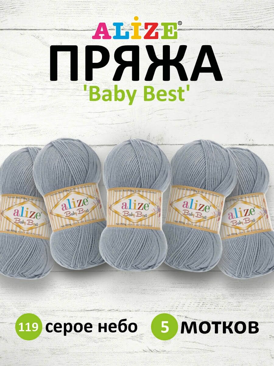 10 цен на Пряжа BABY BEST (Alize), серый - 119, 10% бамбук, 90% акрил, 5 мотков, 100 г., 240 м.