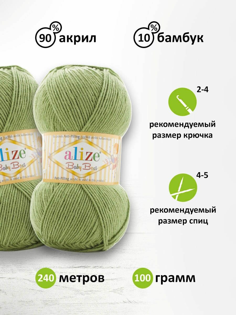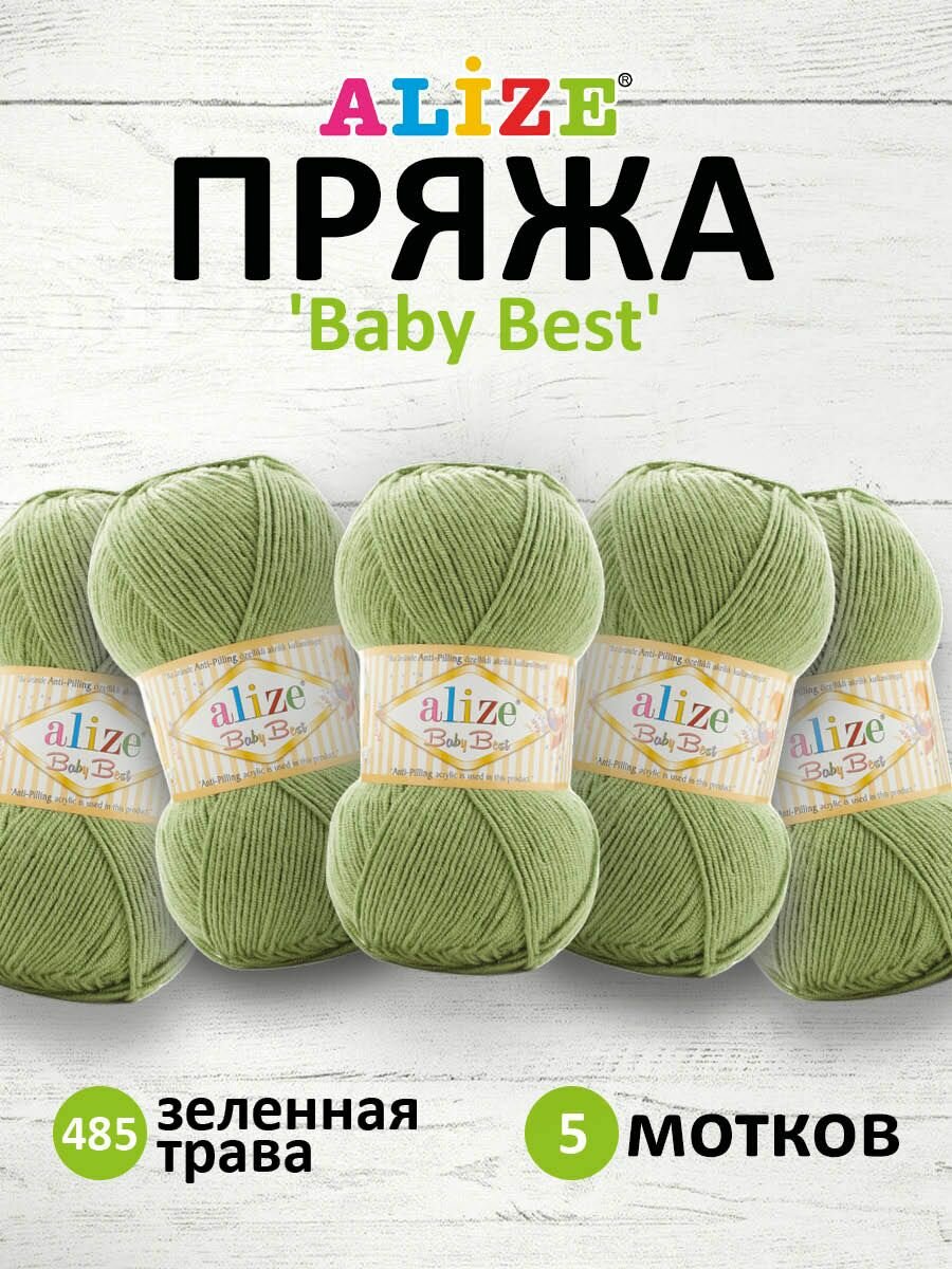 10 цен на Пряжа для вязания Alize 'Baby Best', 100г, 240м (10% бамбук, 90% акрил), с эффектом антипиллинг (485 зеленная трава), 5 мотков