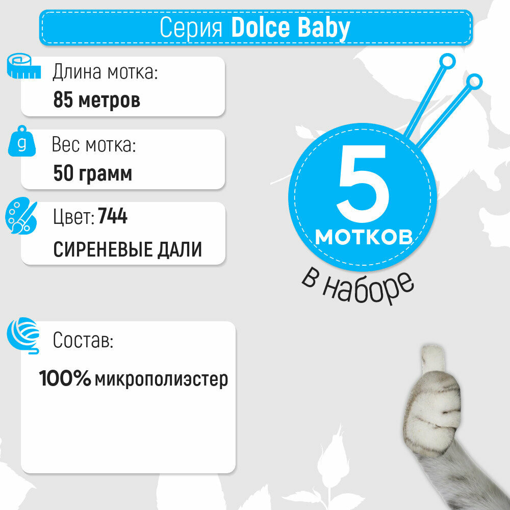 Пряжа YarnArt Dolce Baby сиреневый (744), 100%микрополиэстер, 85м, 50г, 5шт информация: