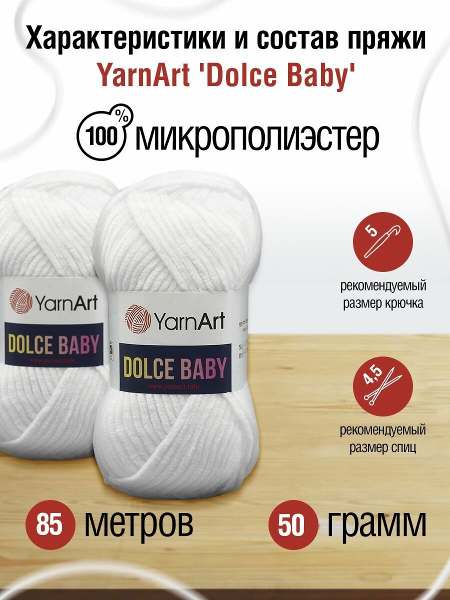 Пряжа YarnArt Dolce Baby белый (741), 100%микрополиэстер, 85м, 50г, 5шт информация: