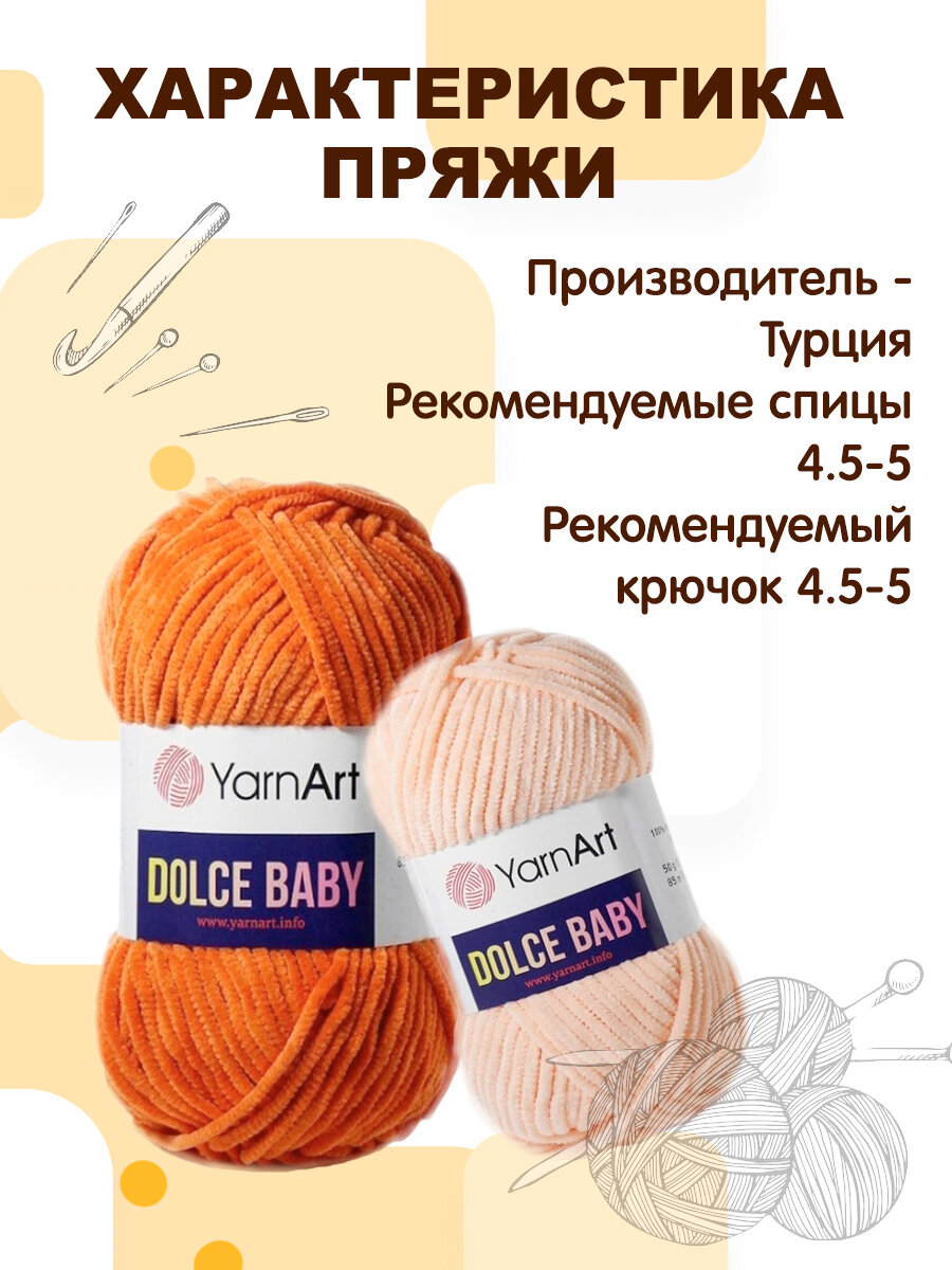 Пряжа Dolce Baby (YarnArt), персик - 773, 100% микрополиэстер, 5 мотков, 50 г, 85 м. 982 ₽