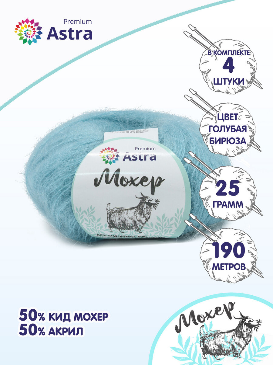 10 цен на Пряжа Astra Premium Мохер Mohair полушерстяная с ворсом 25 г 190 м 36 голубая бирюза 4 мотка