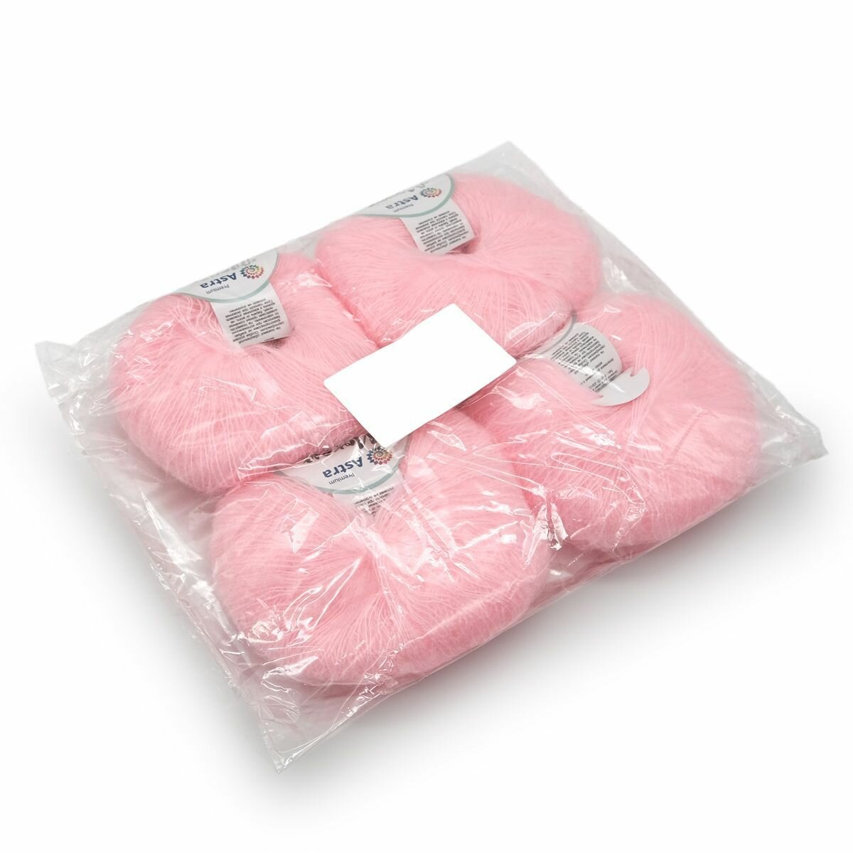 | Комплектация | Упаковка 4 штук Пряжа Astra Premium 'Мохер' (Mohair) 25гр 190м (+/-5%) (50% кид мохер, 50% акрил) (41 пудровый) |