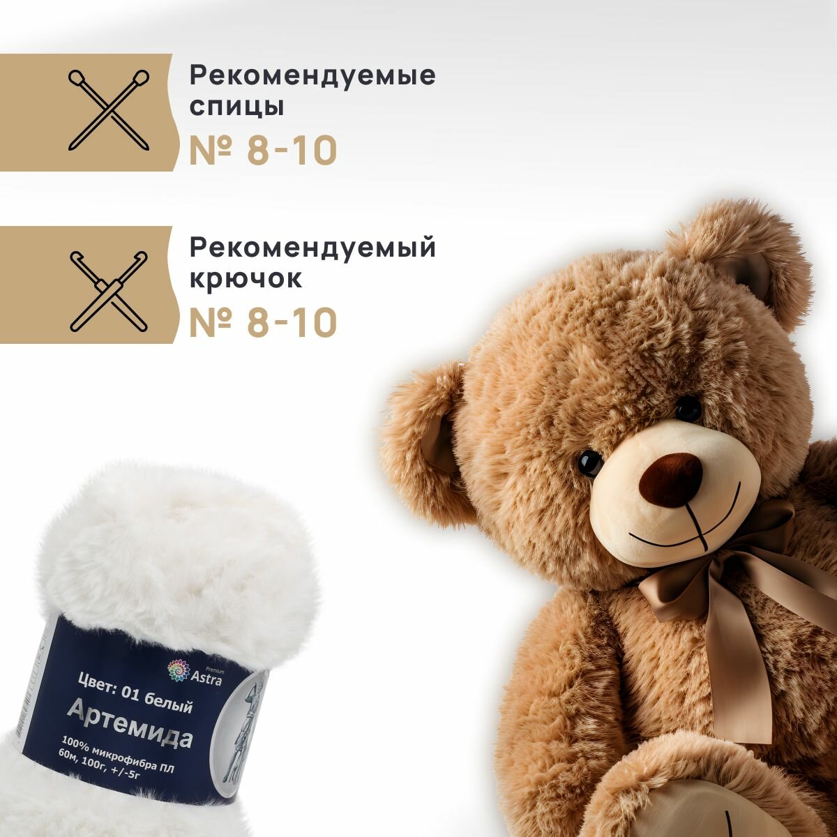 | Комплектация | Упаковка 3 штук Пряжа Astra Premium 'Артемида' 100гр. 60м (100% микрофибра ПЛ) (01 белый) |