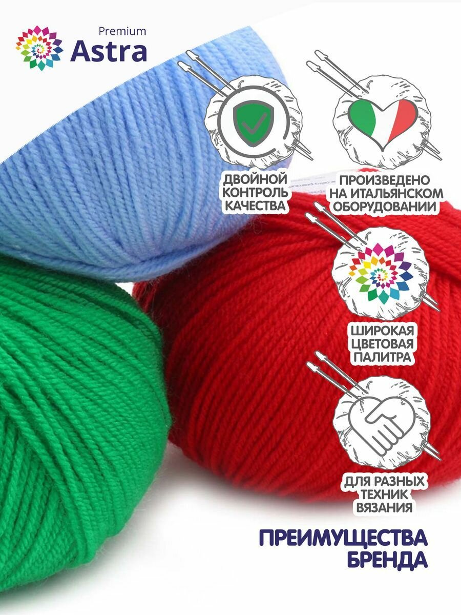 Пряжа Astra Premium 'Афродита', 100 г, 250 м (50% шерсть, 50% акрил), 3 мотка