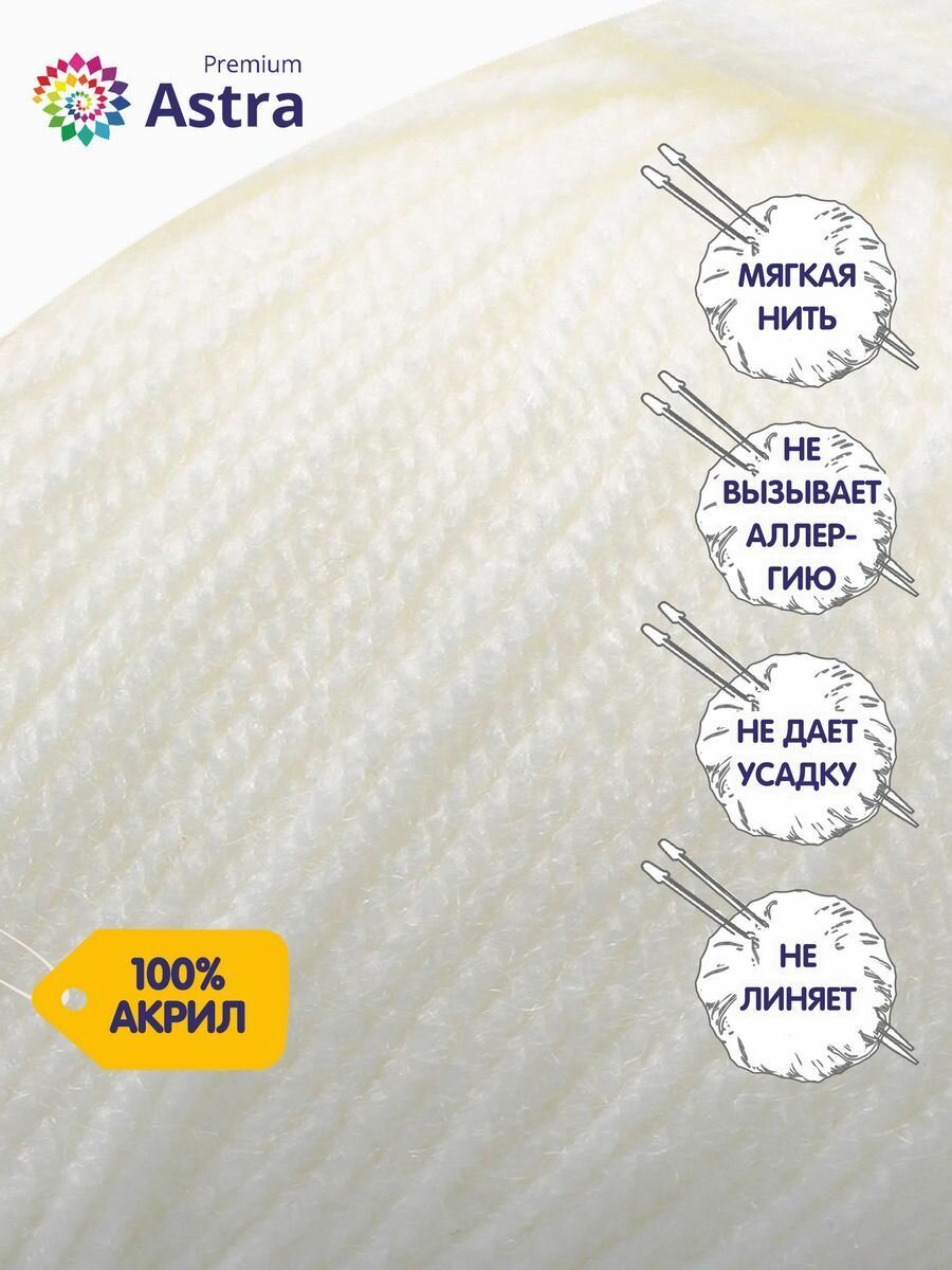 Пряжа для вязания Astra Premium 'Амигуруми', 50г, 175м (100% акрил) (002 отбелка), 6 мотков информация: