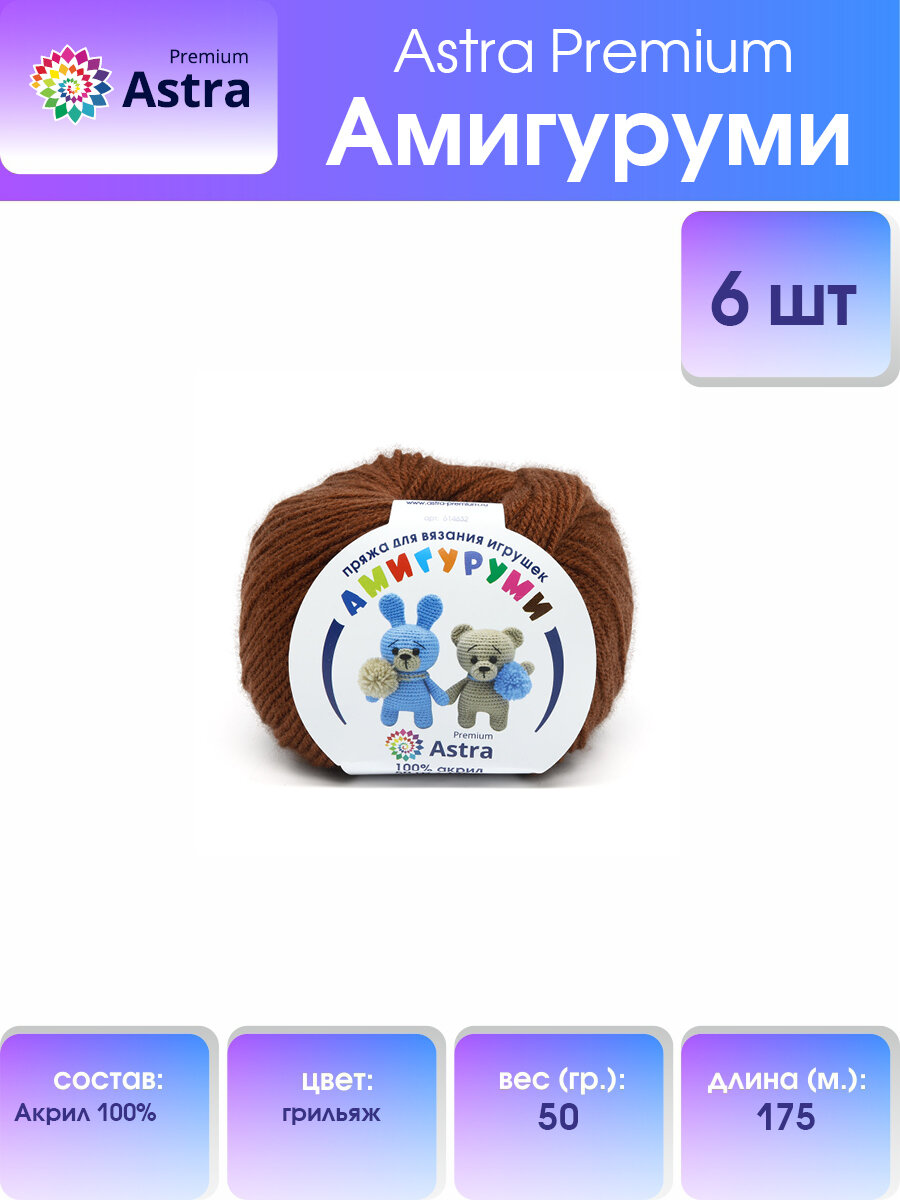 Пряжа для вязания Astra Premium 'Амигуруми', 50г, 175м (100% акрил) (грильяж), 6 мотков информация: