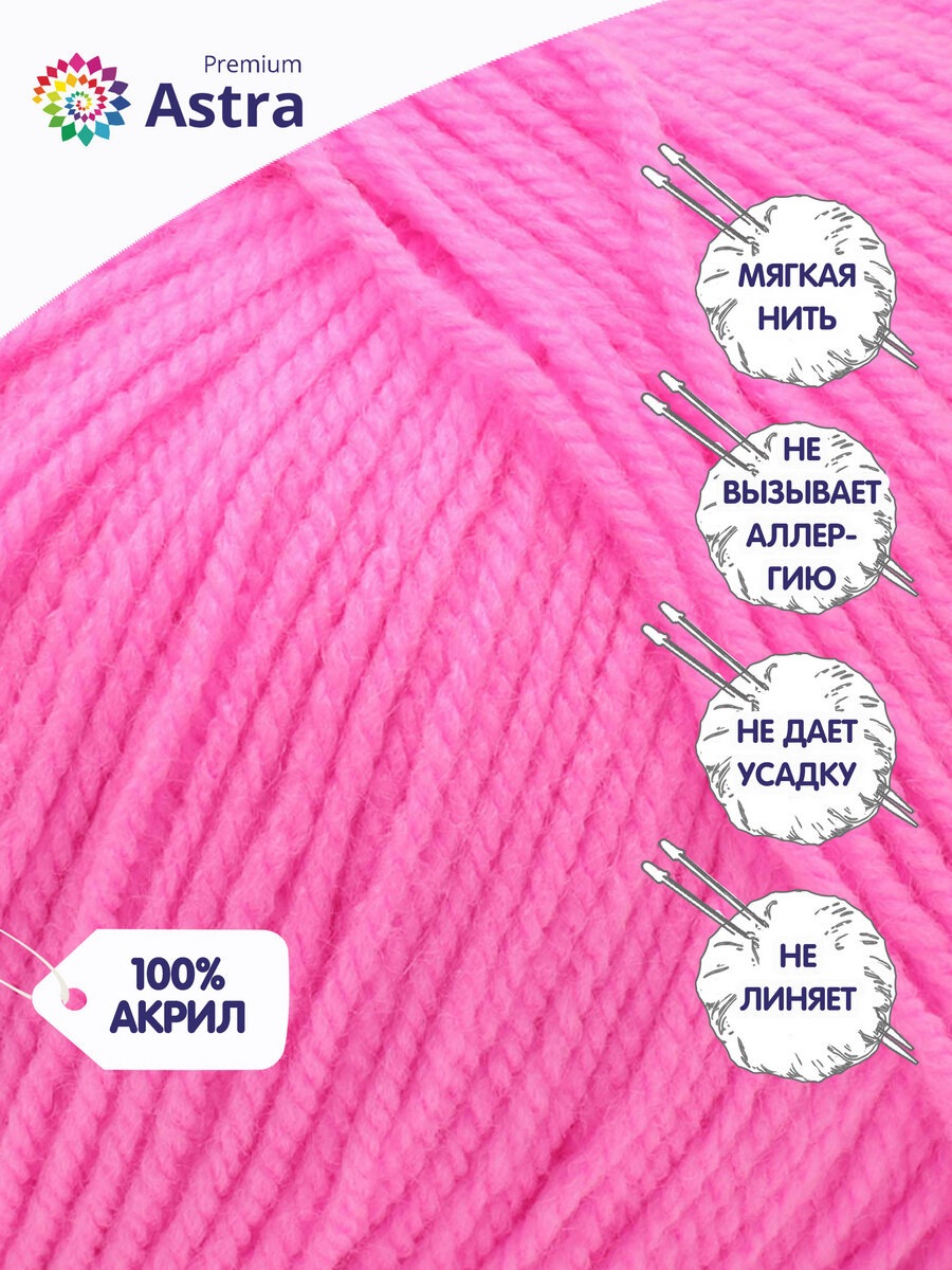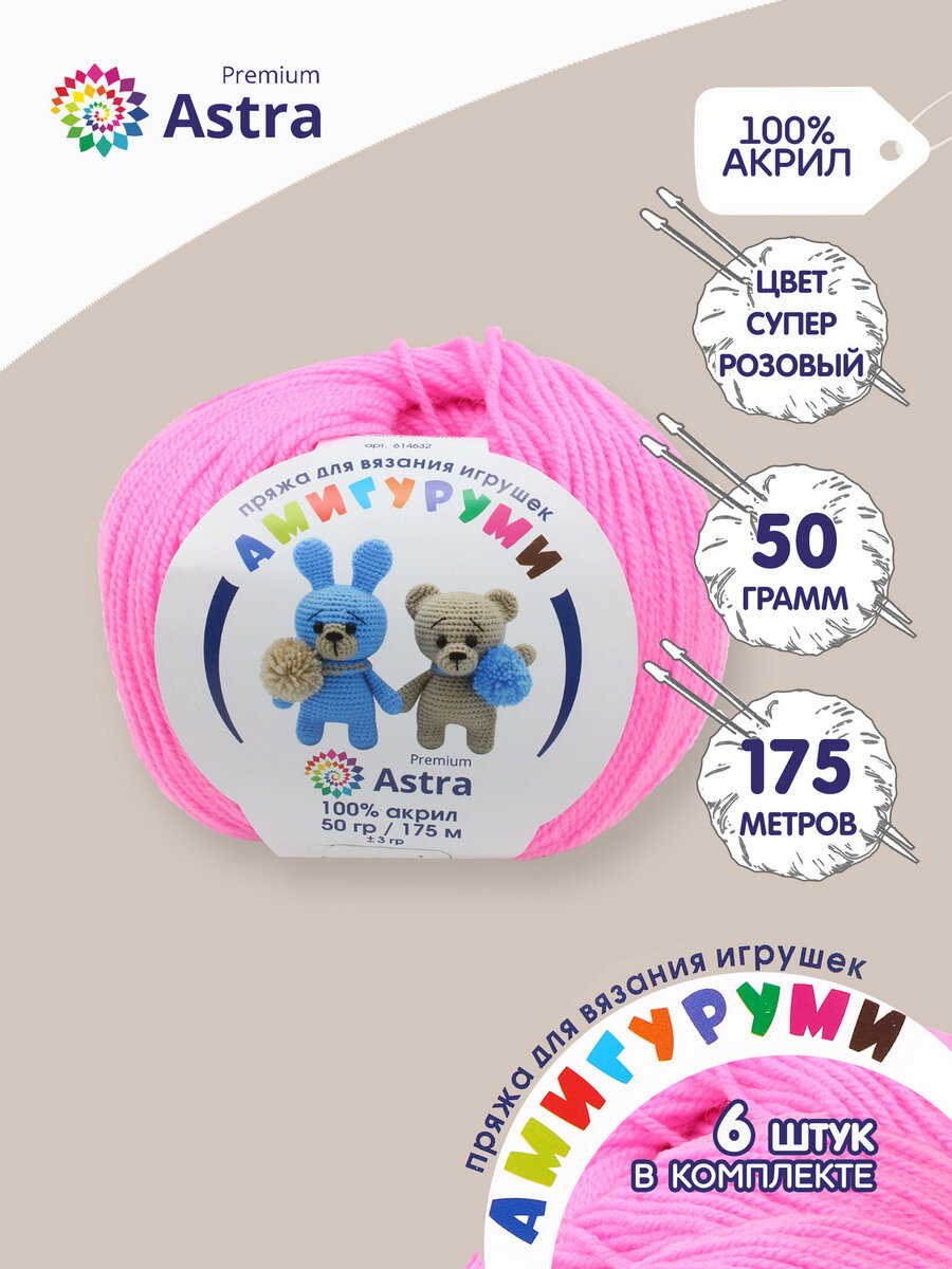 Пряжа для вязания Astra Premium 'Амигуруми', 50г, 175м (100% акрил) (054 суперрозовый), 6 мотков информация:
