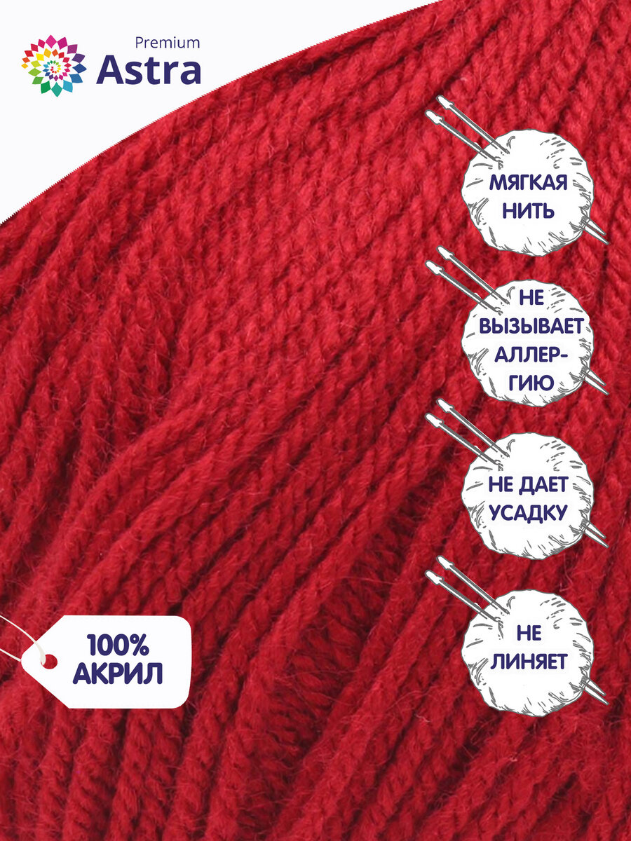 Пряжа для вязания Astra Premium 'Амигуруми', 50г, 175м (100% акрил) (091 вишня), 6 мотков информация: