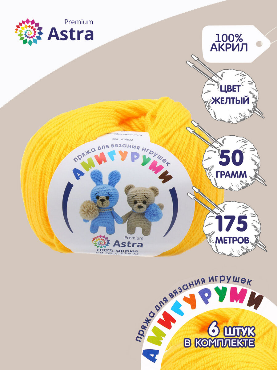 Пряжа Astra Premium 'Амигуруми', 50 г, 175 м (100% акрил), 6 мотков