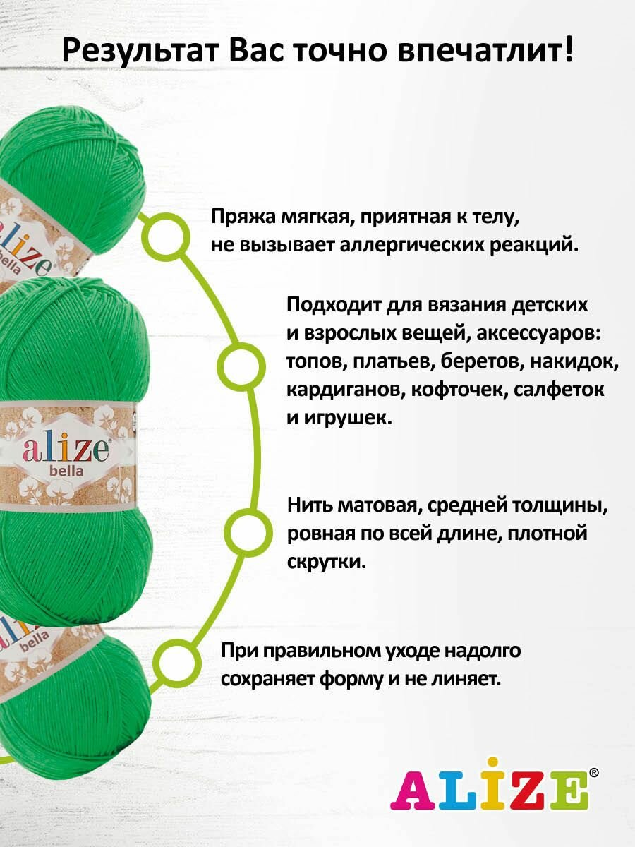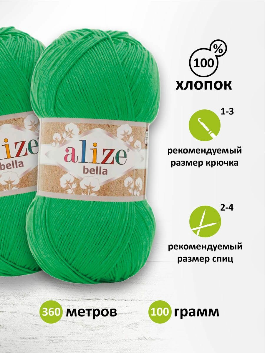 Пряжа Alize Bella 100 весенняя зелень (455), 100%хлопок, 360м, 100г, 1шт