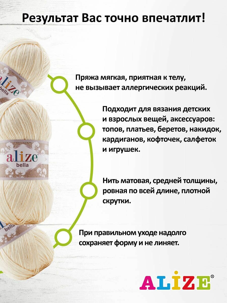 Пряжа для вязания Alize Bella 100 62 молочный, 100 г, 360 м, 5 штук