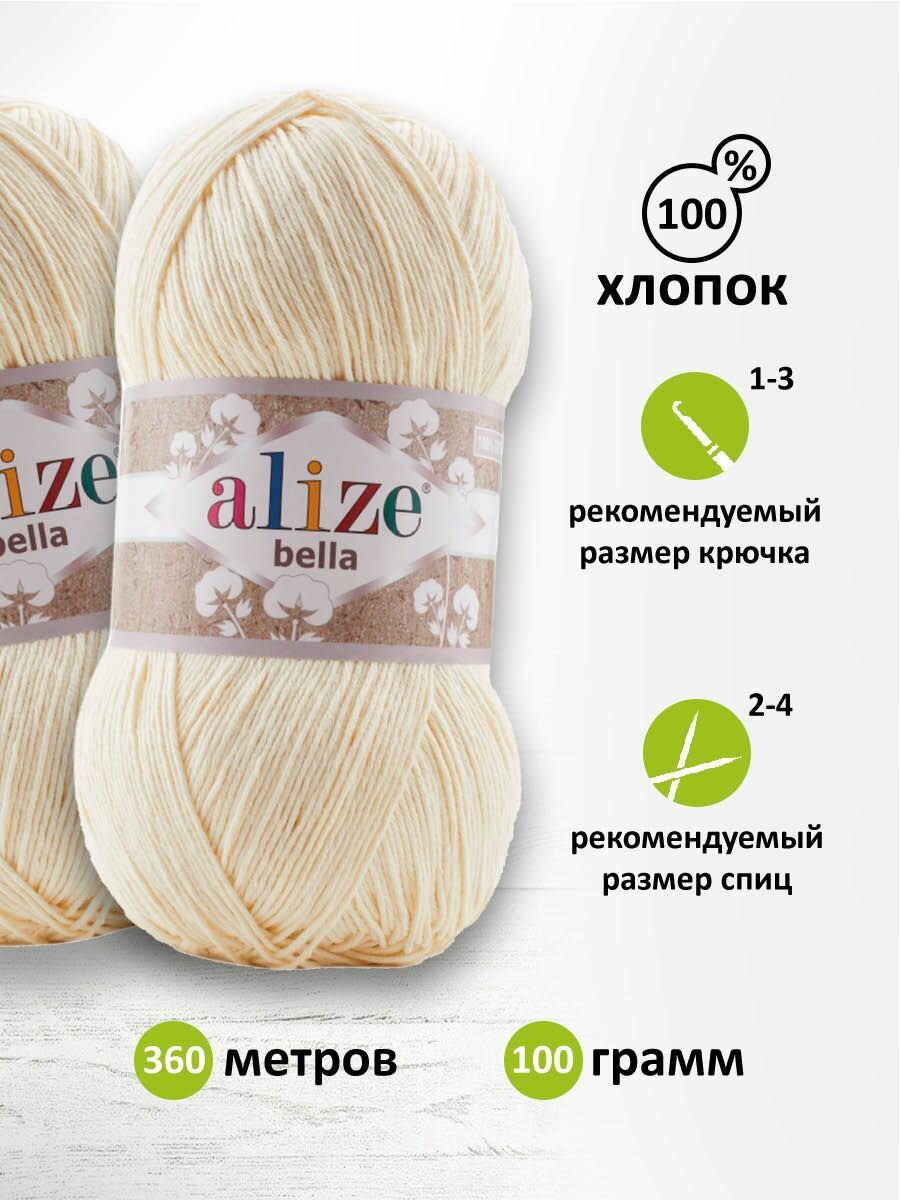 Пряжа Alize Bella 100 молочный (62), 100%хлопок, 360м, 100г, 1шт