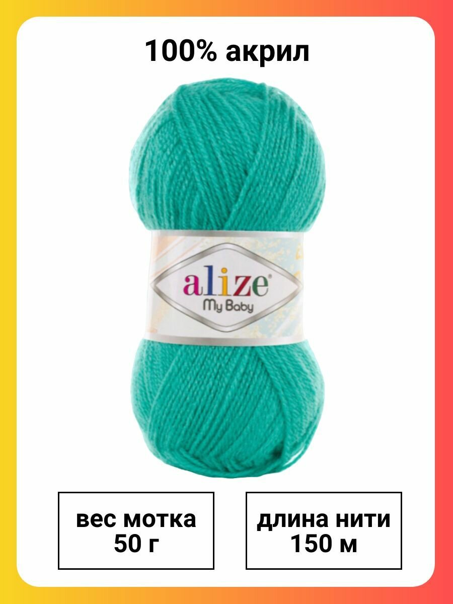 Пряжа MY BABY (Alize), бирюза - 287, 100% акрил, 5 мотков, 50 г, 150 м.