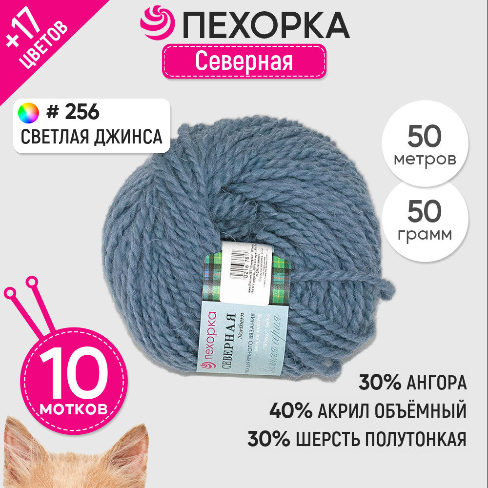 10 цен на Пряжа для вязания Пехорка "Северная" 10 шт, Светлая джинса №256