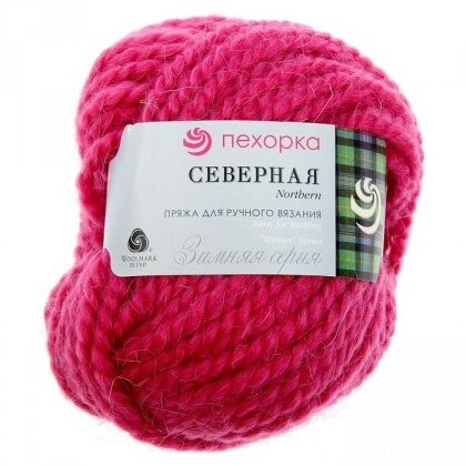 10 цен на Пряжа Пехорка Северная малиновый (439), 30%ангора/30%полутонкая шерсть/40%высокообьёмный акрил, 50м, 50г, 1шт
