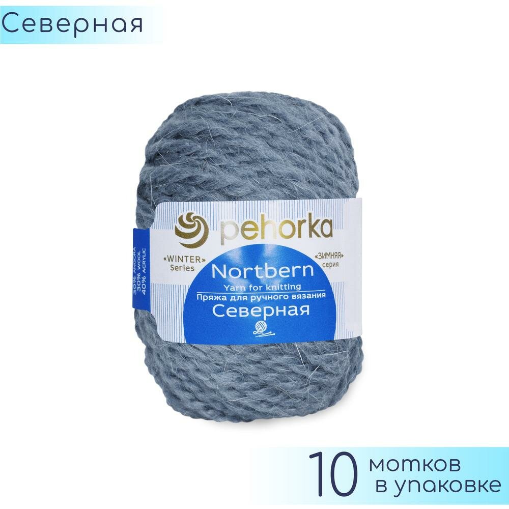 Пряжа для вязания Пехорка 'Северная', 50г, 50м (30% ангора, 30% шерсть, 40% акрил высокообъёмный) (174 стальной), 10 мотков
