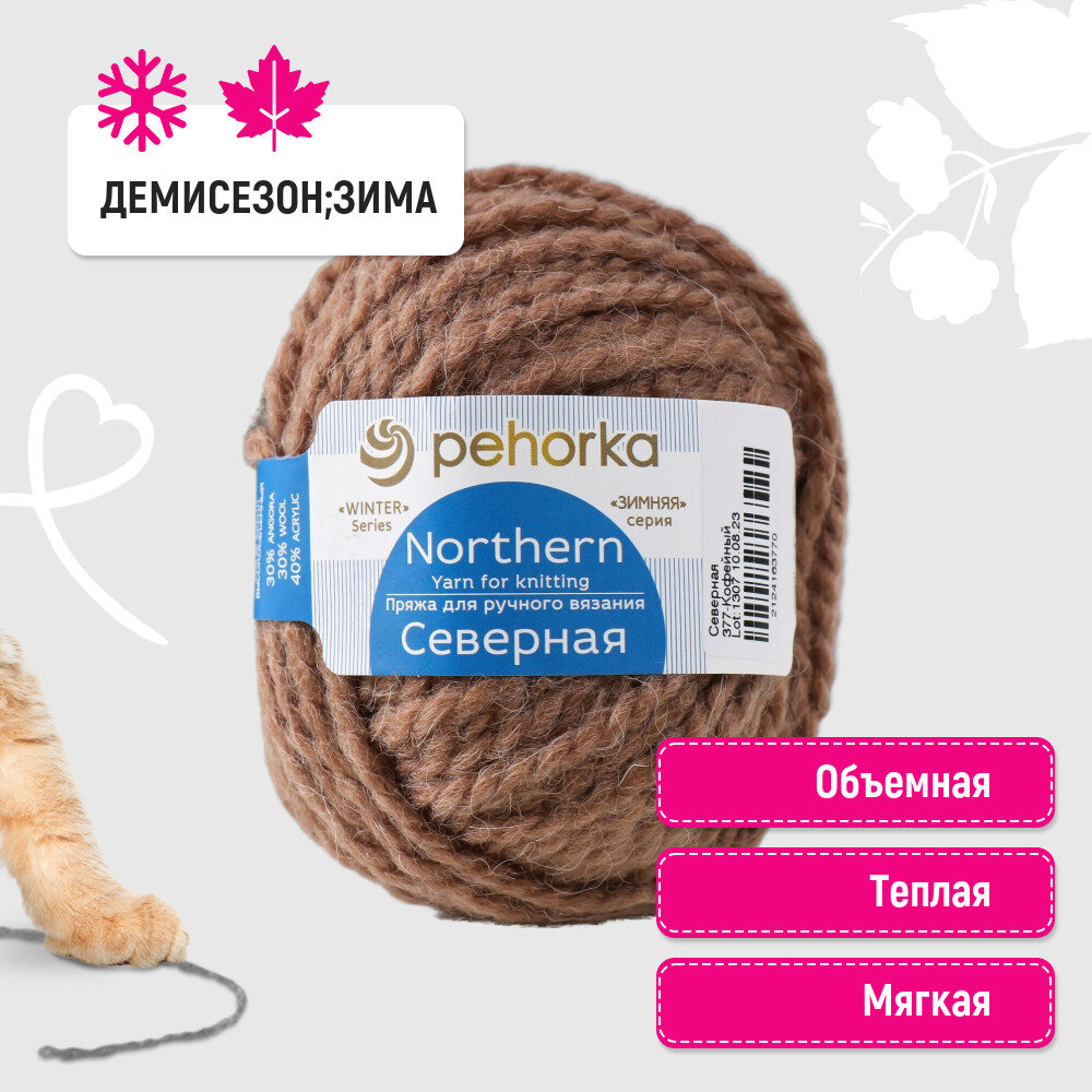 10 цен на Пряжа Пехорка Северная кофейный, 30%ангора/30%полутонкая шерсть/40%высокообьёмный акрил, 50м, 50г, 5шт