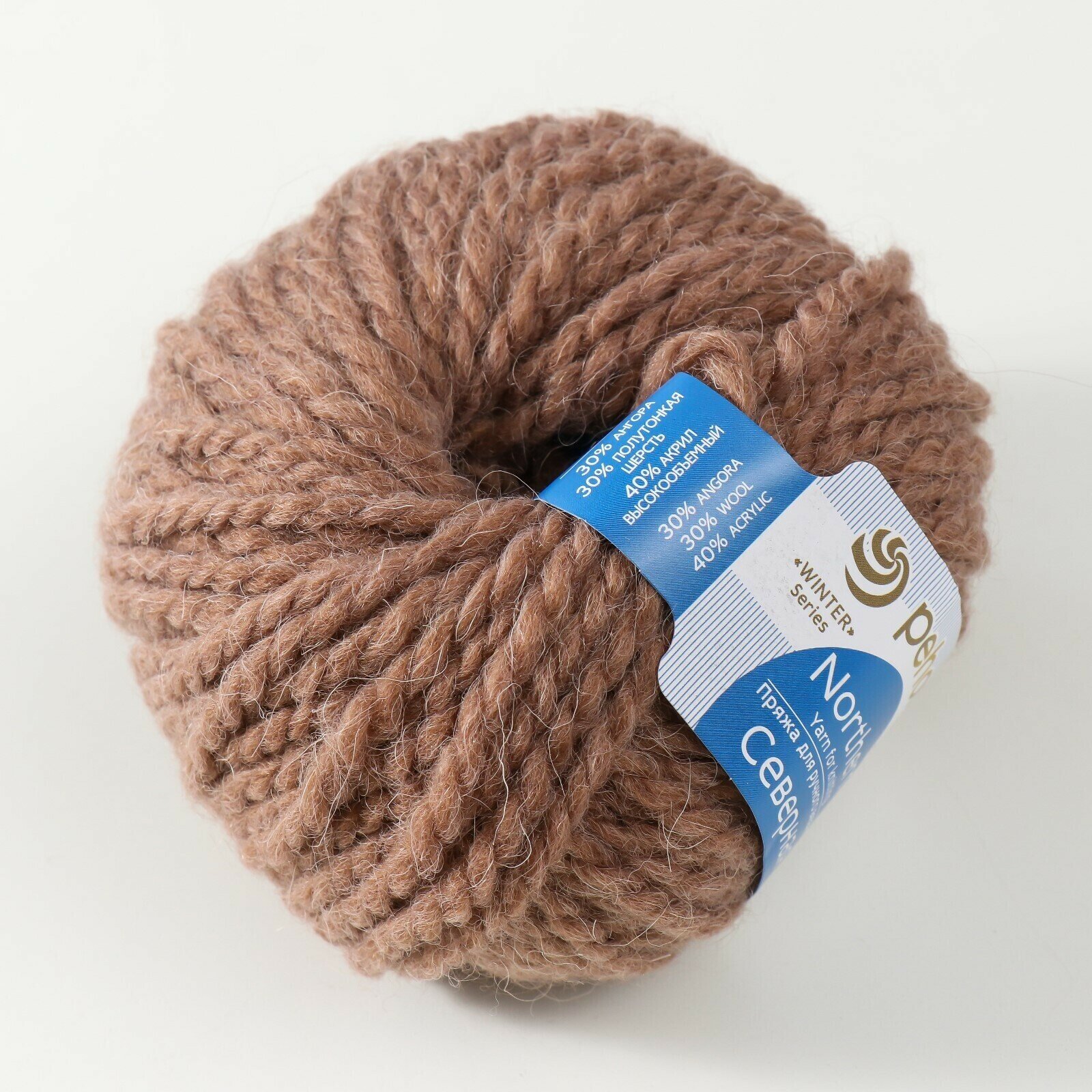 Пряжа Пехорка Северная кофейный, 30%ангора/30%полутонкая шерсть/40%высокообьёмный акрил, 50м, 50г, 1шт