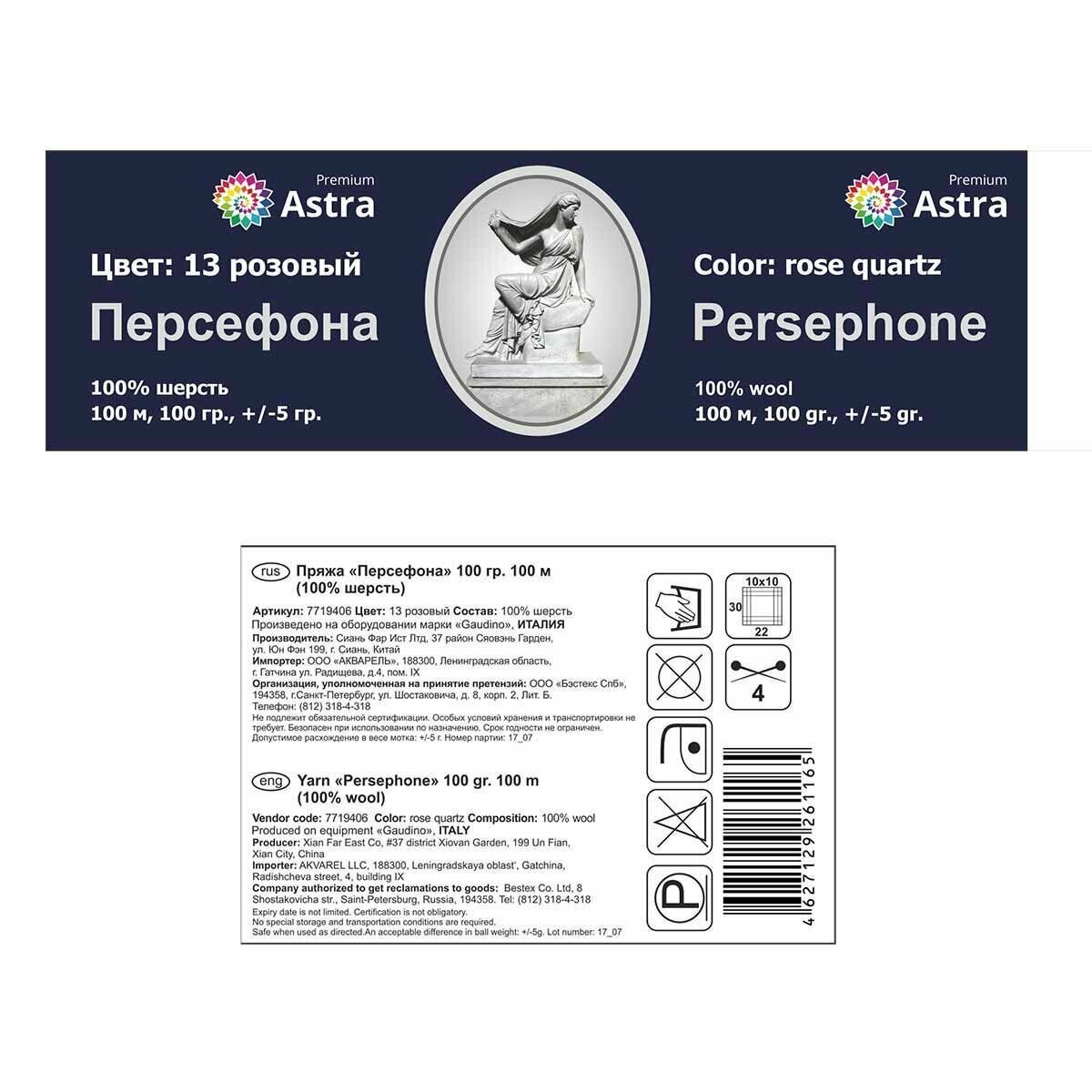 Пряжа Astra Premium 'Афродита', 100 г, 250 м (50% шерсть, 50% акрил), 3 мотка
