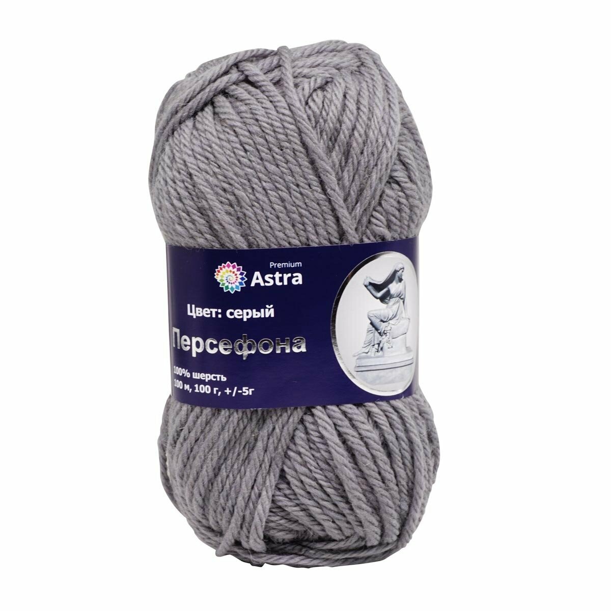 Пряжа для вязания Astra Premium 'Персефона' 100, 100м (100% шерсть) (10 серый), 3 мотка 705 ₽