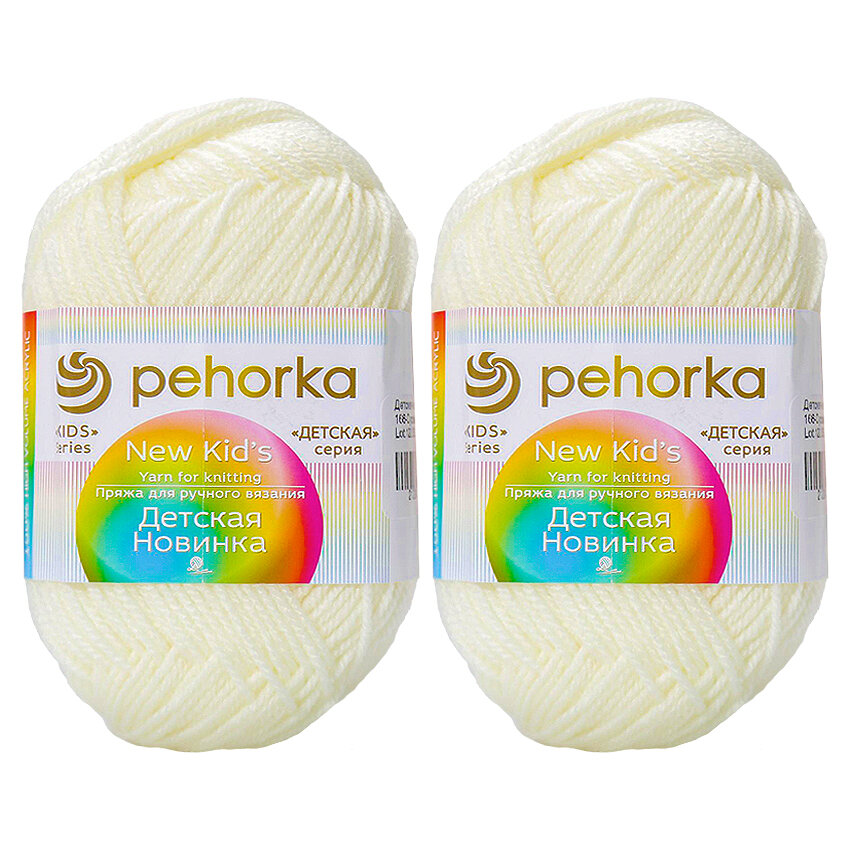 Пряжа для вязания Пехорка Детская новинка, комплект: 2 шт., цвет: белый (01), состав: 100% акрил, вес: 50 г, длина: 200 м