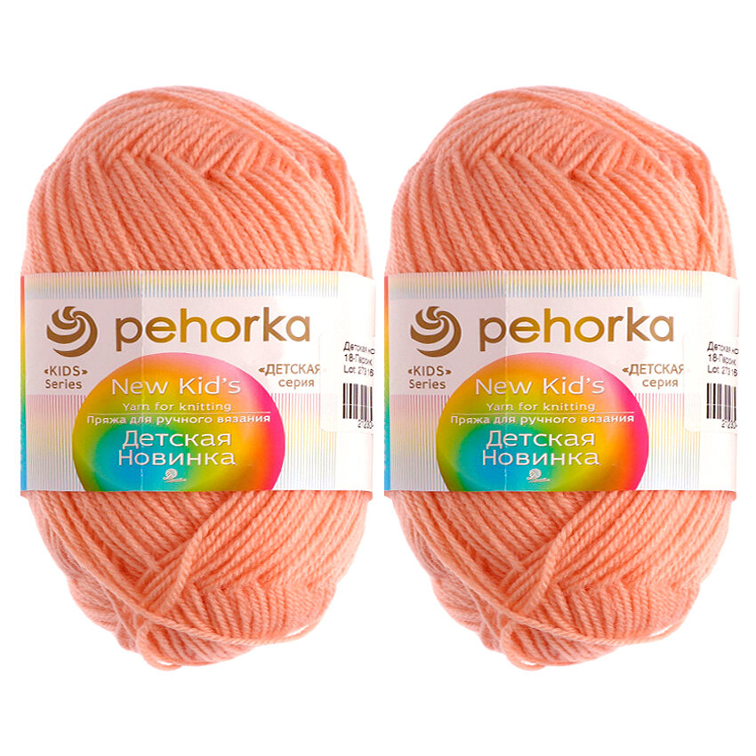 Пряжа для вязания Пехорка Детская новинка, комплект: 2 шт., цвет: персик (18), состав: 100% акрил, вес: 50 г, длина: 200 м информация: