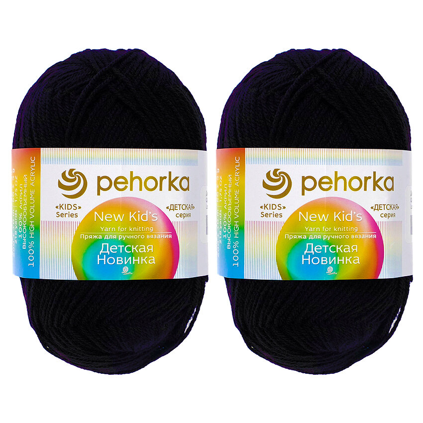 Пряжа для вязания Пехорка Детская новинка, комплект: 2 шт., цвет: черный (02), состав: 100% акрил, вес: 50 г, длина: 200 м информация: