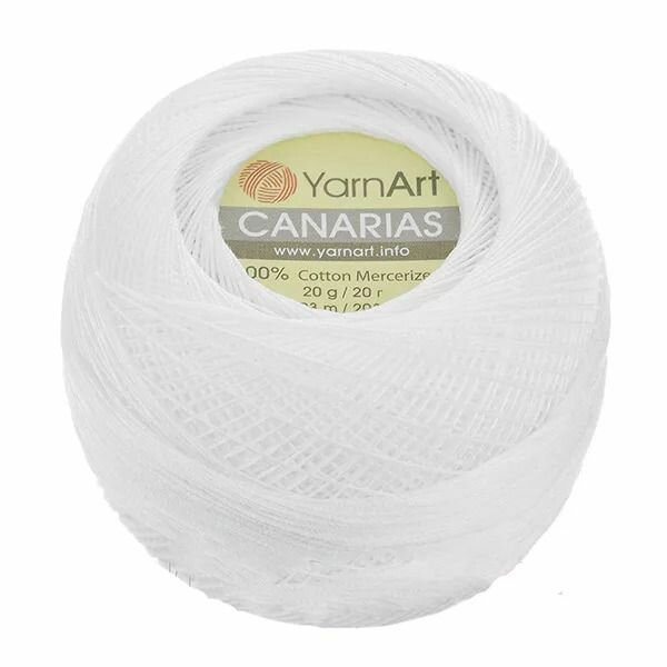 Пряжа YarnArt Canarias белый, 100%мерсеризованный хлопок, 203м, 20г, 1шт
