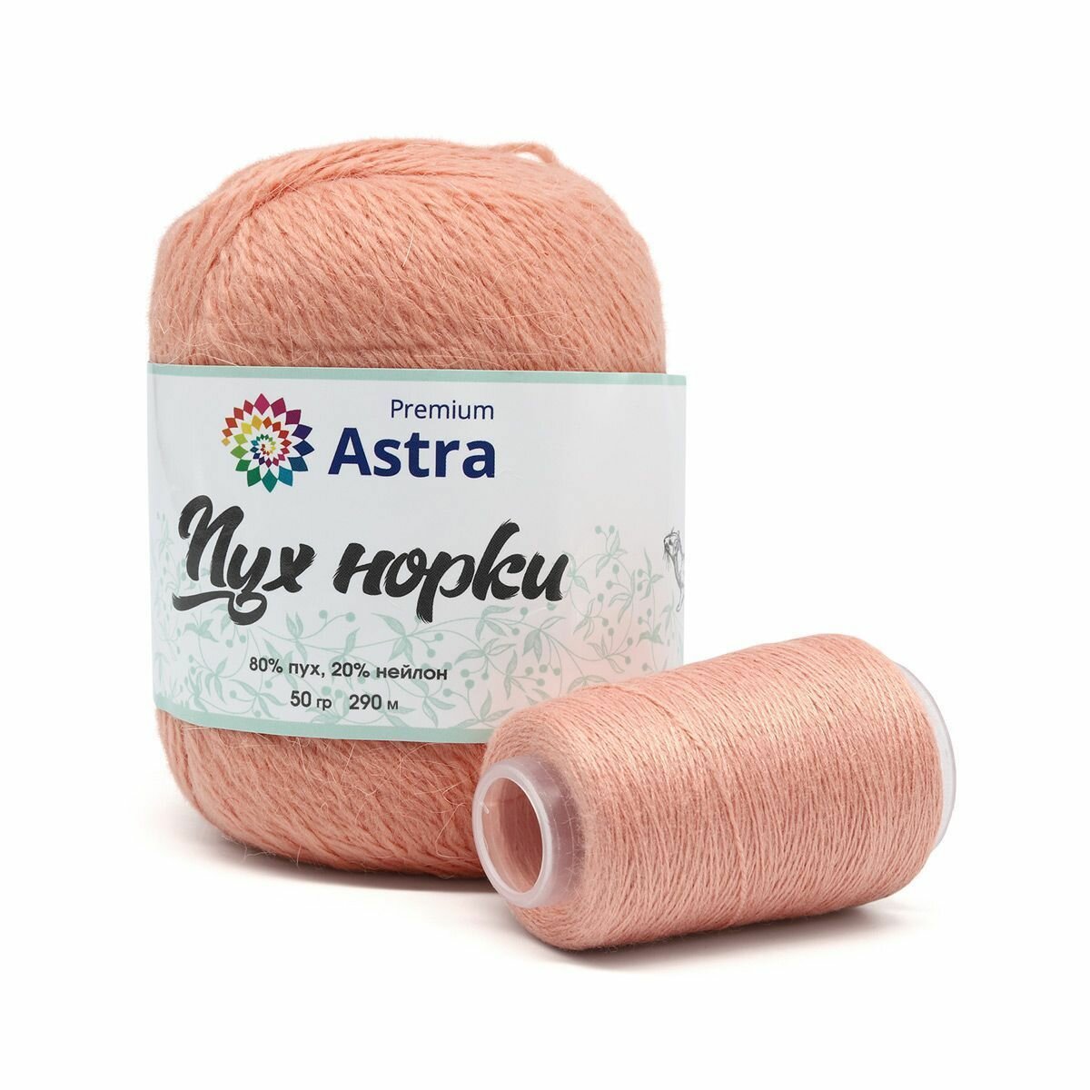 Пряжа для вязания Astra Premium 'Пух норки' (Mink yarn), 50г, 290м (+- 5%) (80% пух, 20% нейлон) (+ нить 20 г) (031 персиковый) информация:
