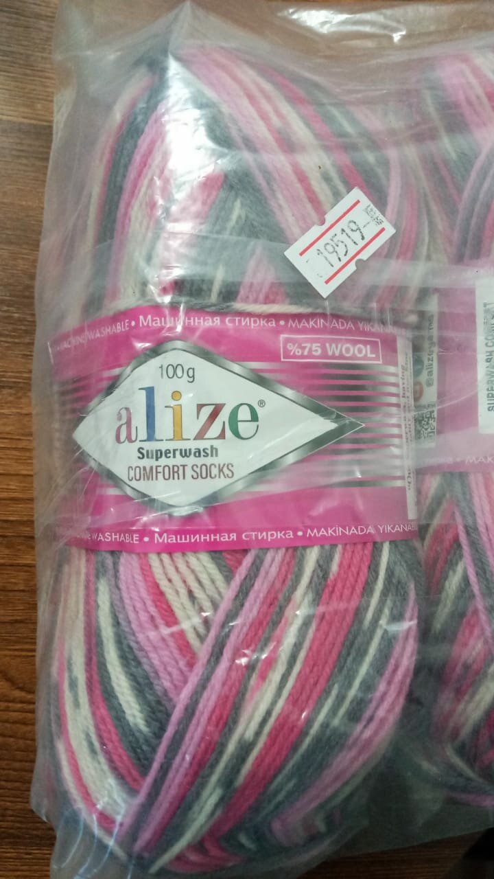 Отзывы на Пряжа Alize Superwash comfort socks кремовый-розовый-серый (7707), 75%шерсть/25%полиамид, 420м, 100г, 1шт