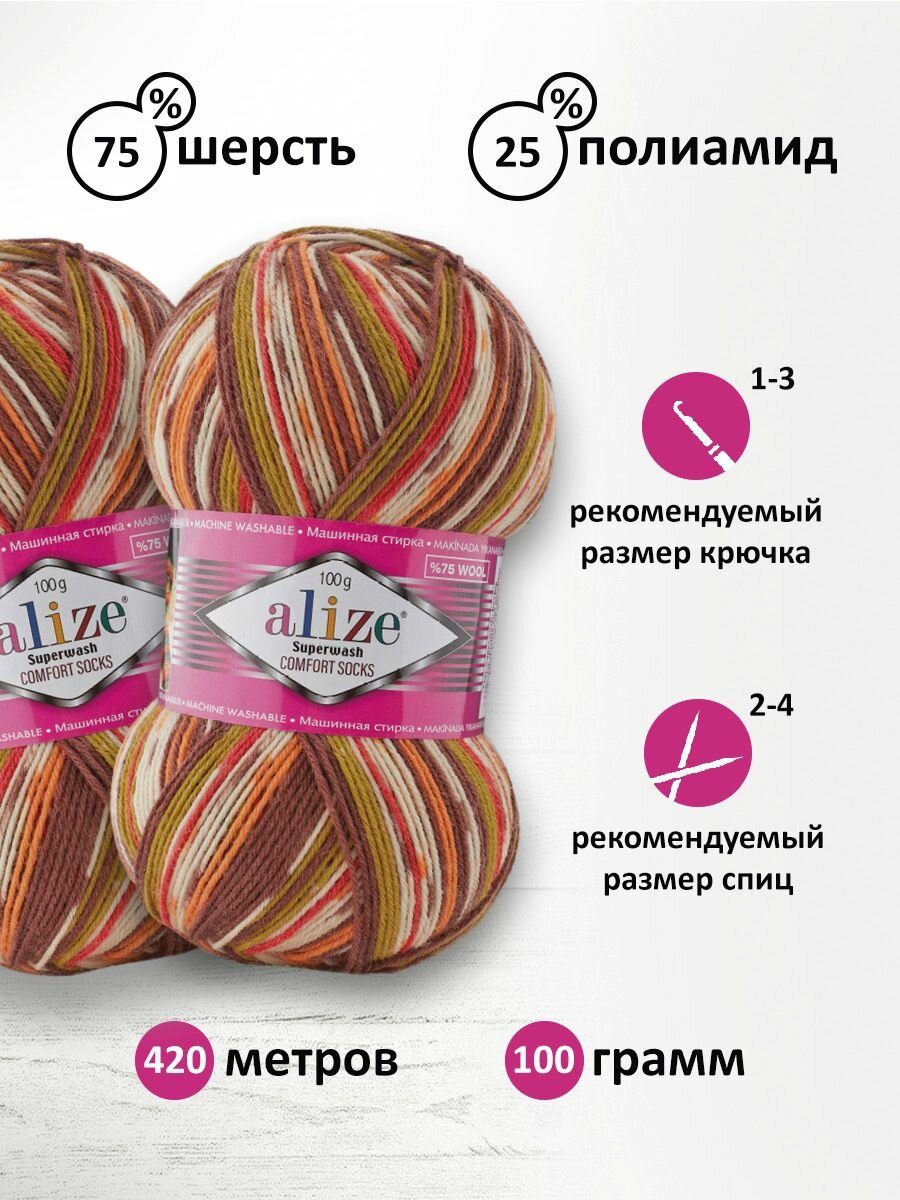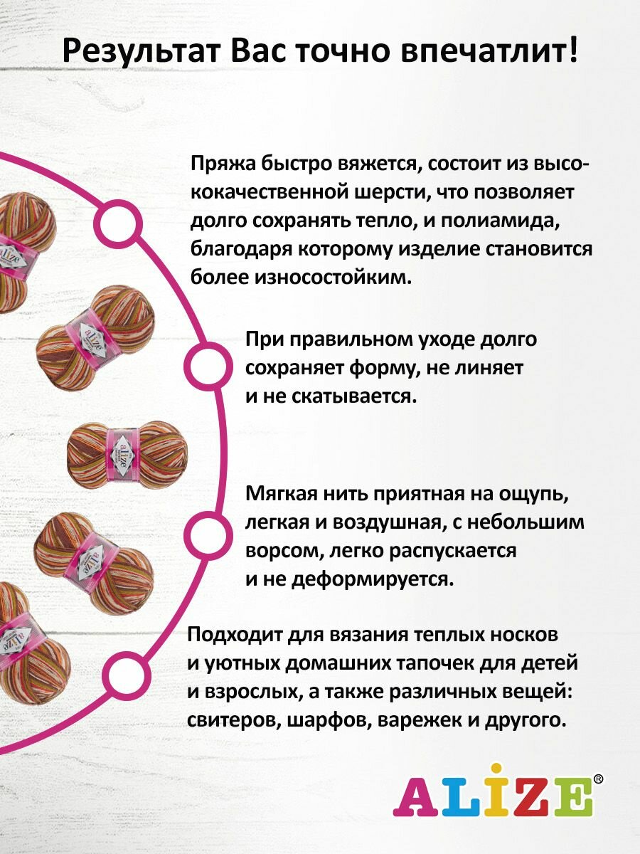 Отзывы на Пряжа Alize Superwash comfort socks белый-оранжевый-коричневый-зеленый (7709), 75%шерсть/25%полиамид, 420м, 100г, 5шт