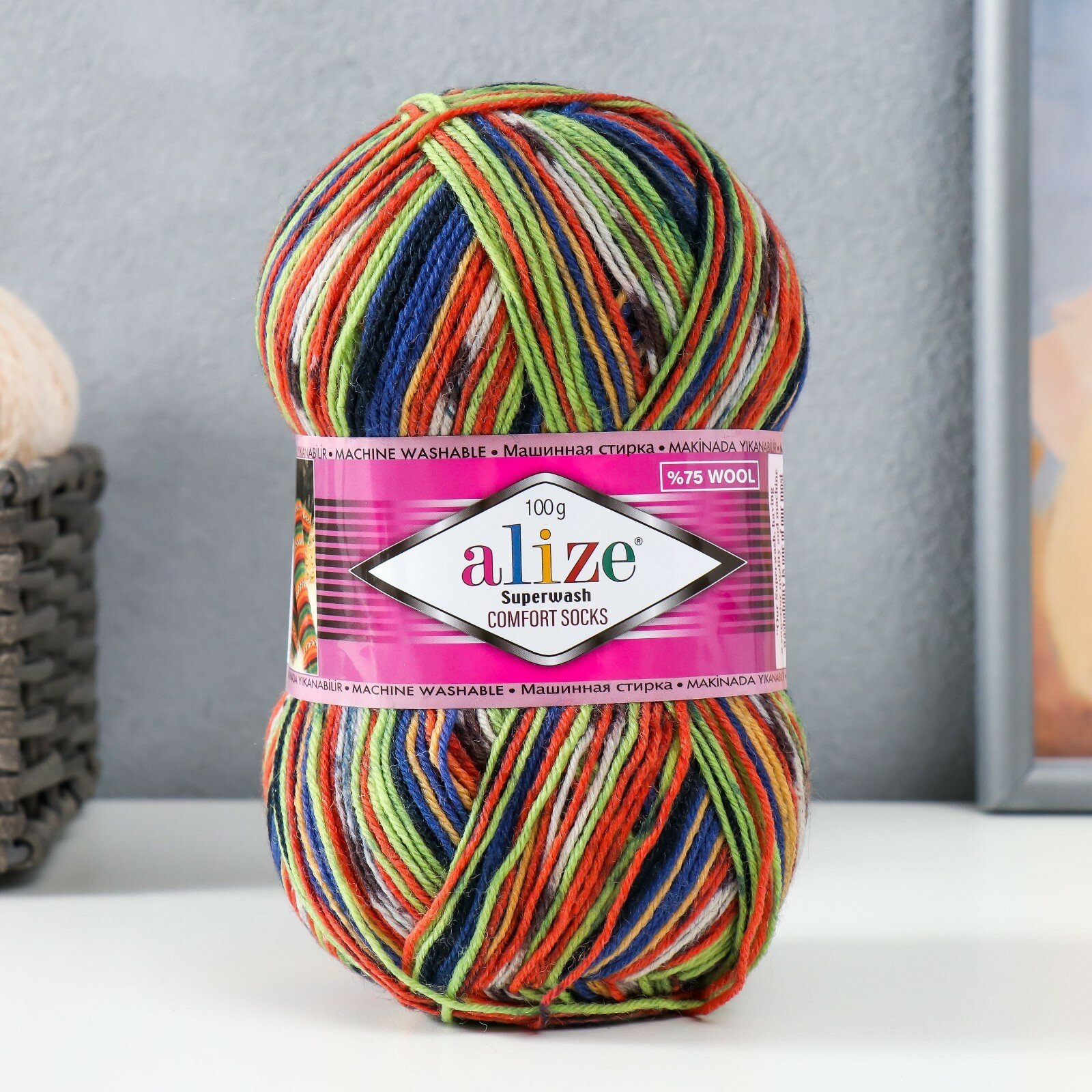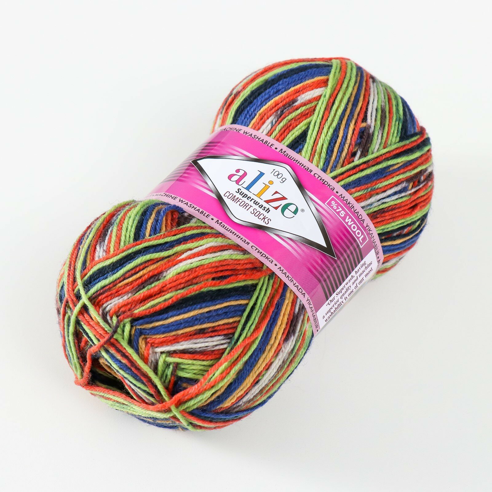 10 цен на Пряжа Alize Superwash Comfort Socks (Ализе Супервош) - 1 моток, зеленый оранжевый синий (2701), 75% шерсть супервош, 25% полиамид, 420м/100г