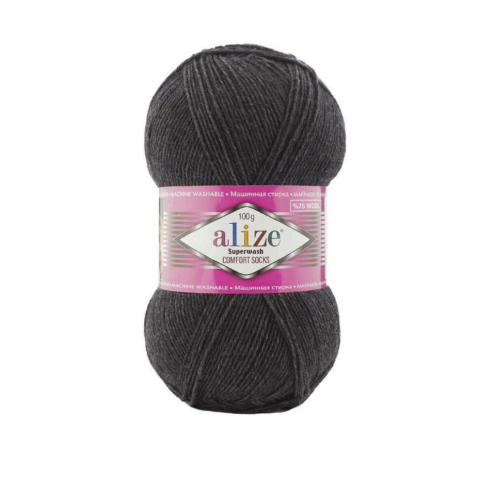 10 цен на Пряжа Alize Superwash 100 антрацит (521), 75%шерсть/25%полиамид, 420м, 100г, 5шт