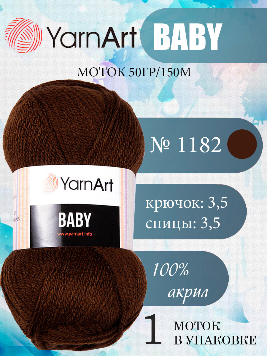 Пряжа Yarnart Baby коричневый (1182), 100%акрил, 150м, 50г, 1шт информация: