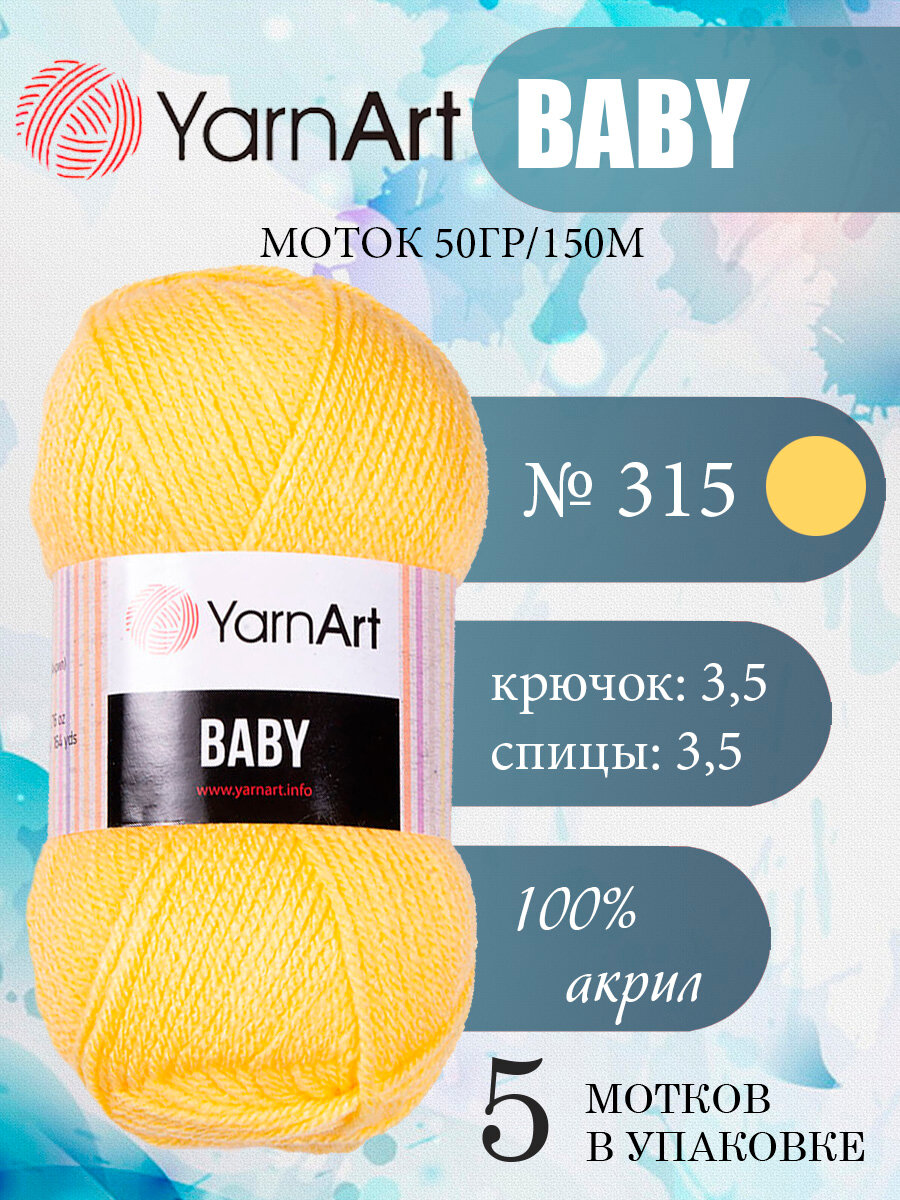 Пряжа Yarnart Baby желтый (315), 100%акрил, 150м, 50г, 5шт информация: