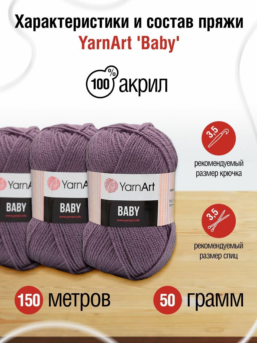 Отзывы на Пряжа BABY (YarnArt), черника - 852, 100% акрил, 5 мотков, 50 г., 150 м.