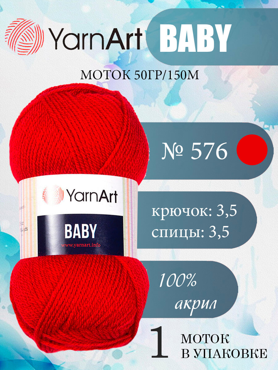 Пряжа Yarnart Baby красный (576), 100%акрил, 150м, 50г, 1шт информация: