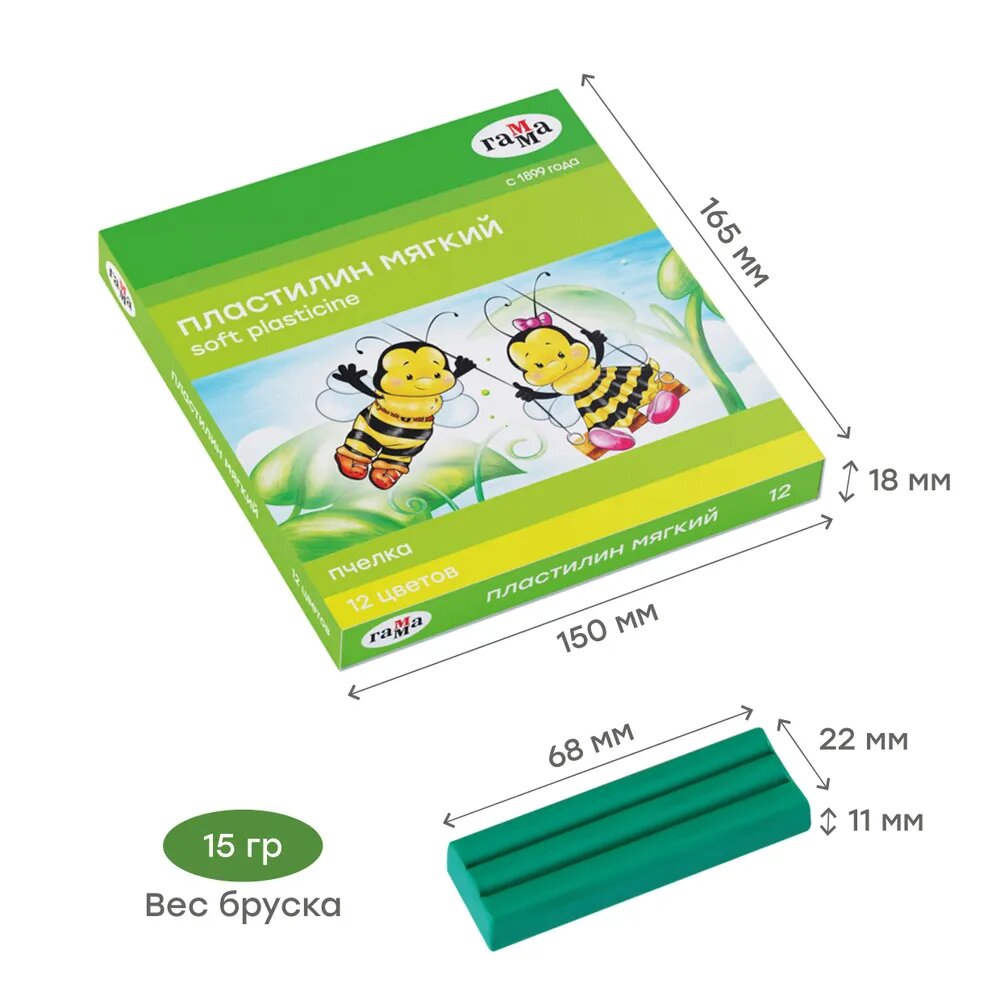 Пластилин для лепки Гамма "Пчелка" восковой мягкий детский, 12 цветов, со стеком / Набор для развития и творчества детей в школу и детский сад информация: