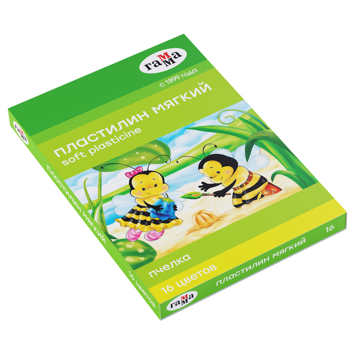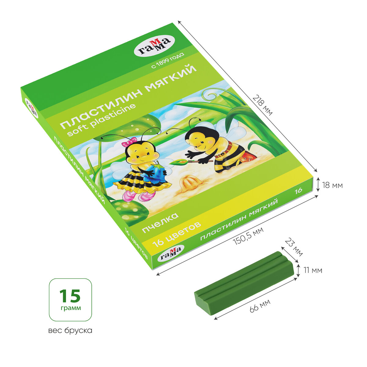 Пластилин для лепки Гамма "Пчелка" восковой мягкий детский, 16 цветов, со стеком / Набор для развития и творчества детей в школу и детский сад 283 ₽